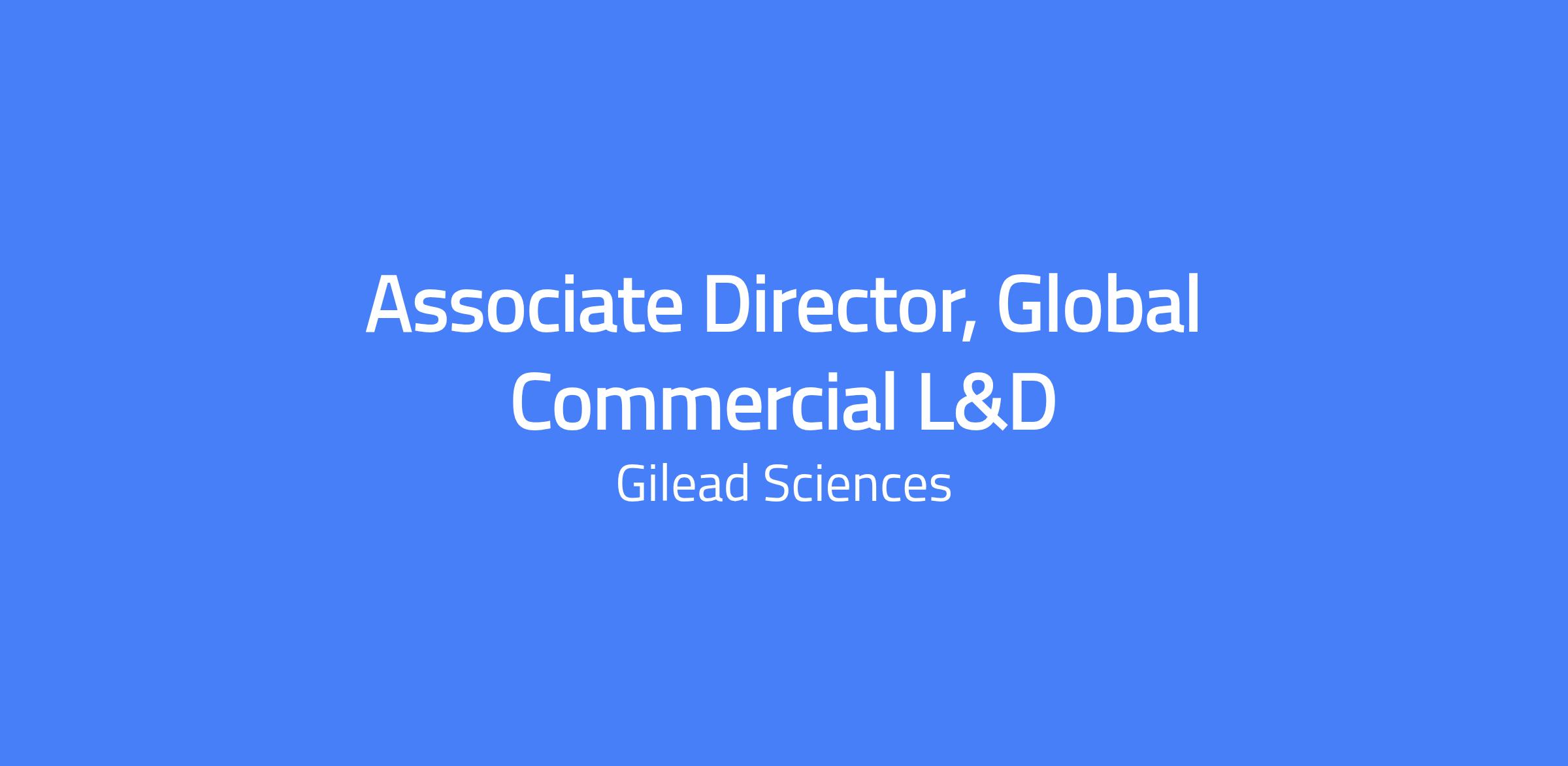 Associate Director, Global Commercial Learning & Development (GCL+D) is a senior individual contributor role with high visibility and impact across Gilead affiliates worldwide, driving conceptual development and leading cross-functional projects. Located in Foster City, CA (hybrid).