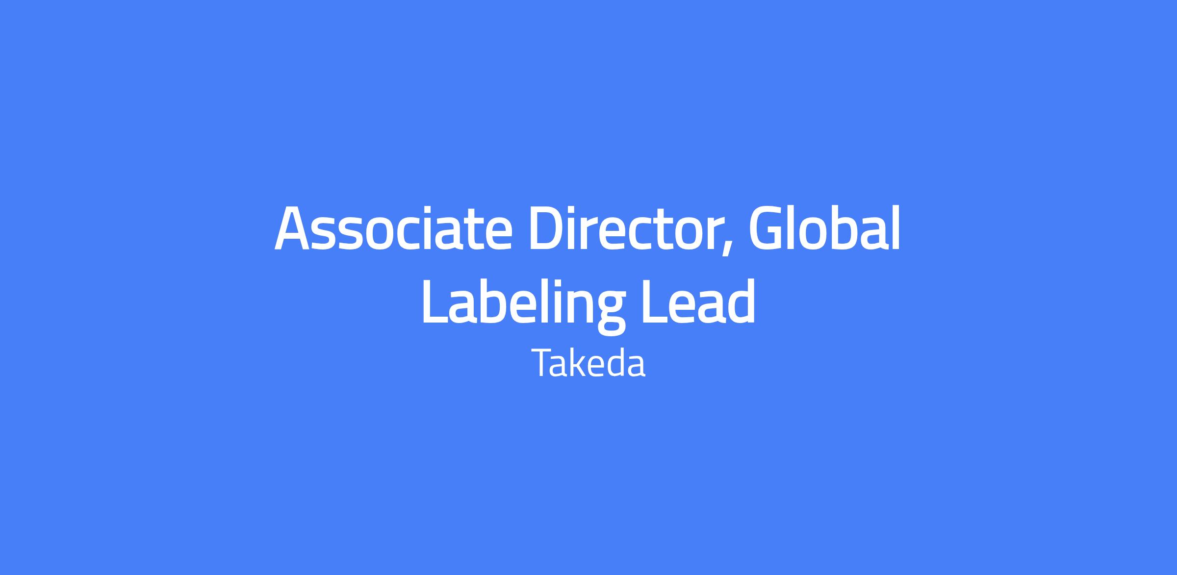 Associate Director, Global Labeling Lead at Takeda. Responsible for the development and implementation of labeling content and strategy for multiple assigned products in various stages of drug development, including updates to or creation of a new TLP, CCDS, USPI and EU SmPC, with limited supervision and guidance.