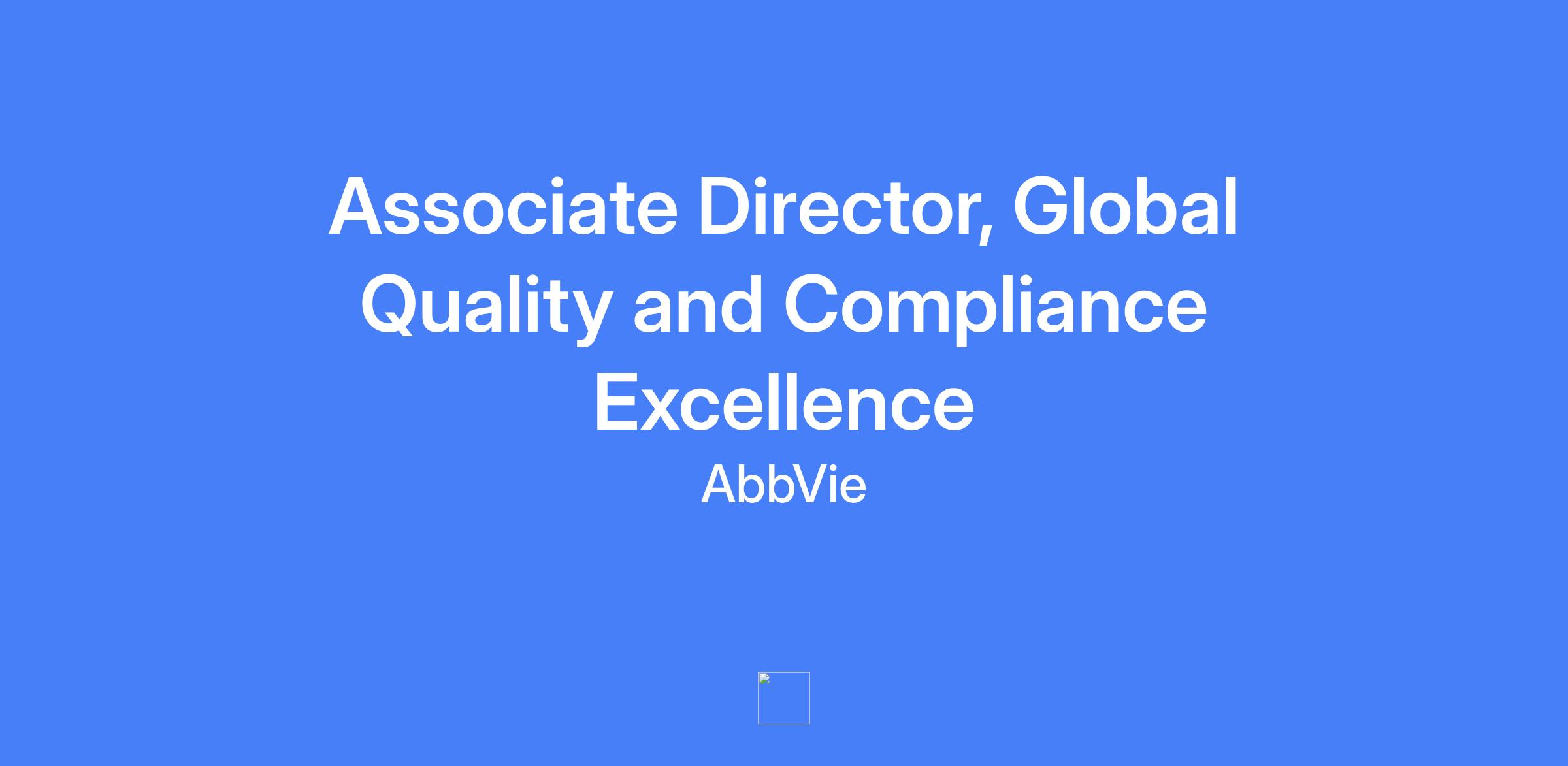Associate Director, Global Quality and Compliance Excellence. Leads preparedness for regulatory inspections and audits across AbbVie sites globally, driving a quality culture and ensuring readiness for inspections of small molecule pharmaceuticals, biologics, combination products, medical devices, tissue, and cosmetics.