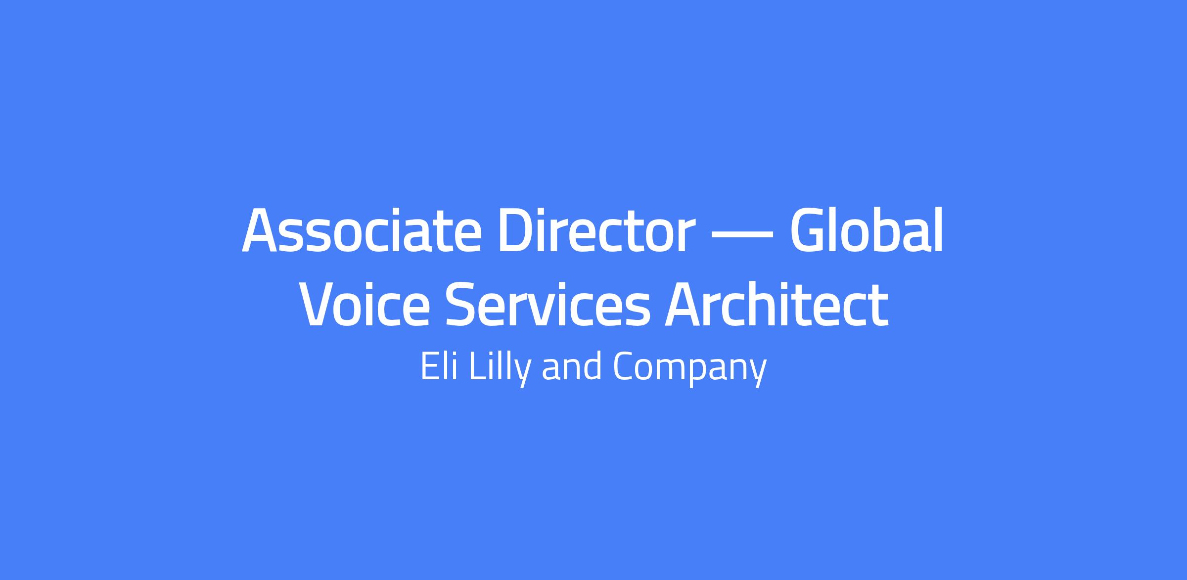Associate Director β Global Voice Services Architect at Lilly leads the global strategy and architecture for enterprise voice services. You will shape the future of voice at scale, drive modernization and innovation in telephony, and influence cross-functional teams and vendors. This role requires strategic thinking, deep telephony expertise, and the ability to align voice solutions with business outcomes across a Fortune 500 organization.