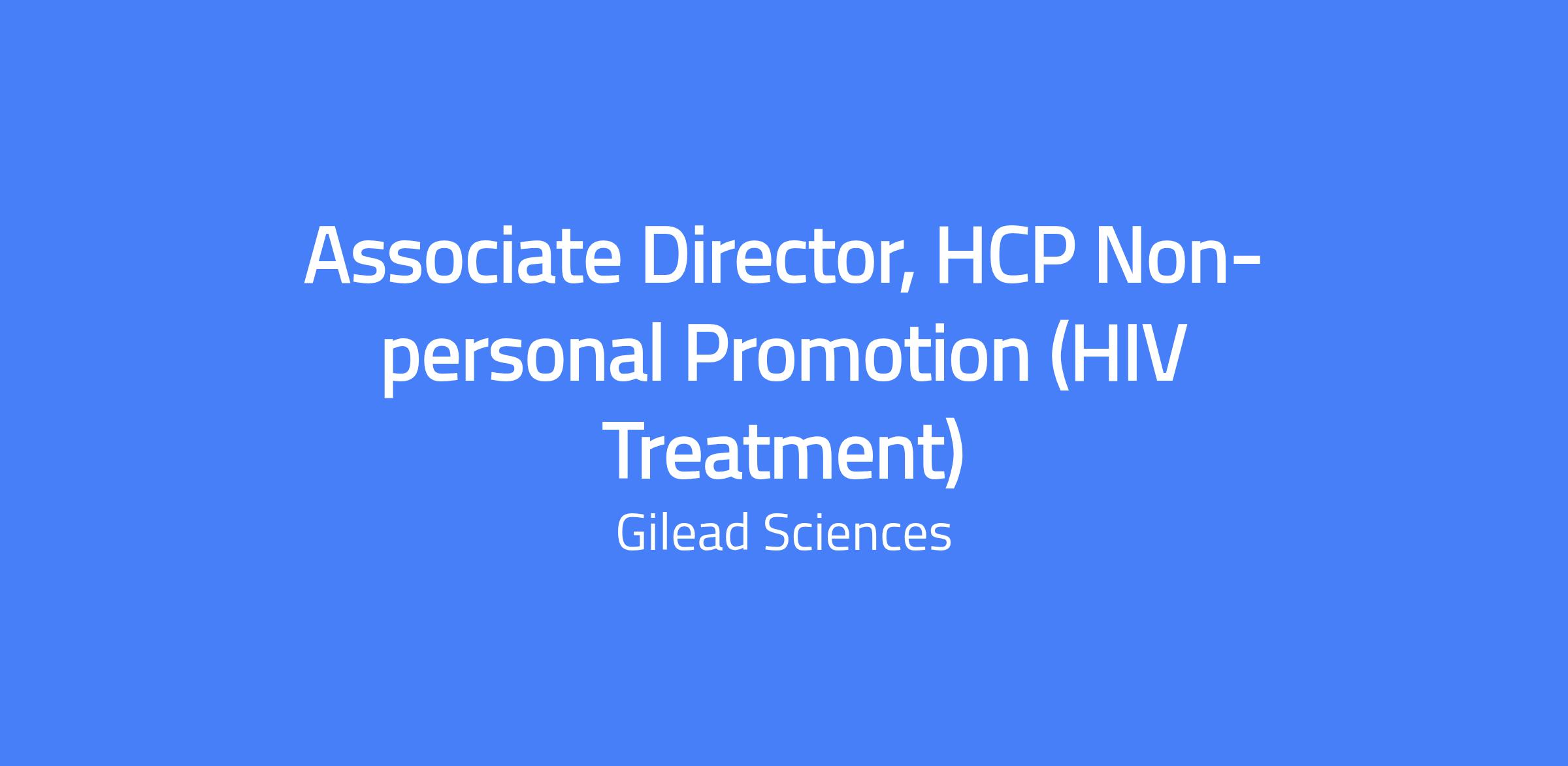 Associate Director, Provider Non-personal Promotion (HIV Treatment) at Gilead. You will champion the launch of a novel HIV therapy and shape and execute marketing strategies for HCP non-personal promotion. You’ll report to the Senior Director, HIV Treatment Marketing and collaborate across internal teams to drive launch readiness and portfolio strategy.