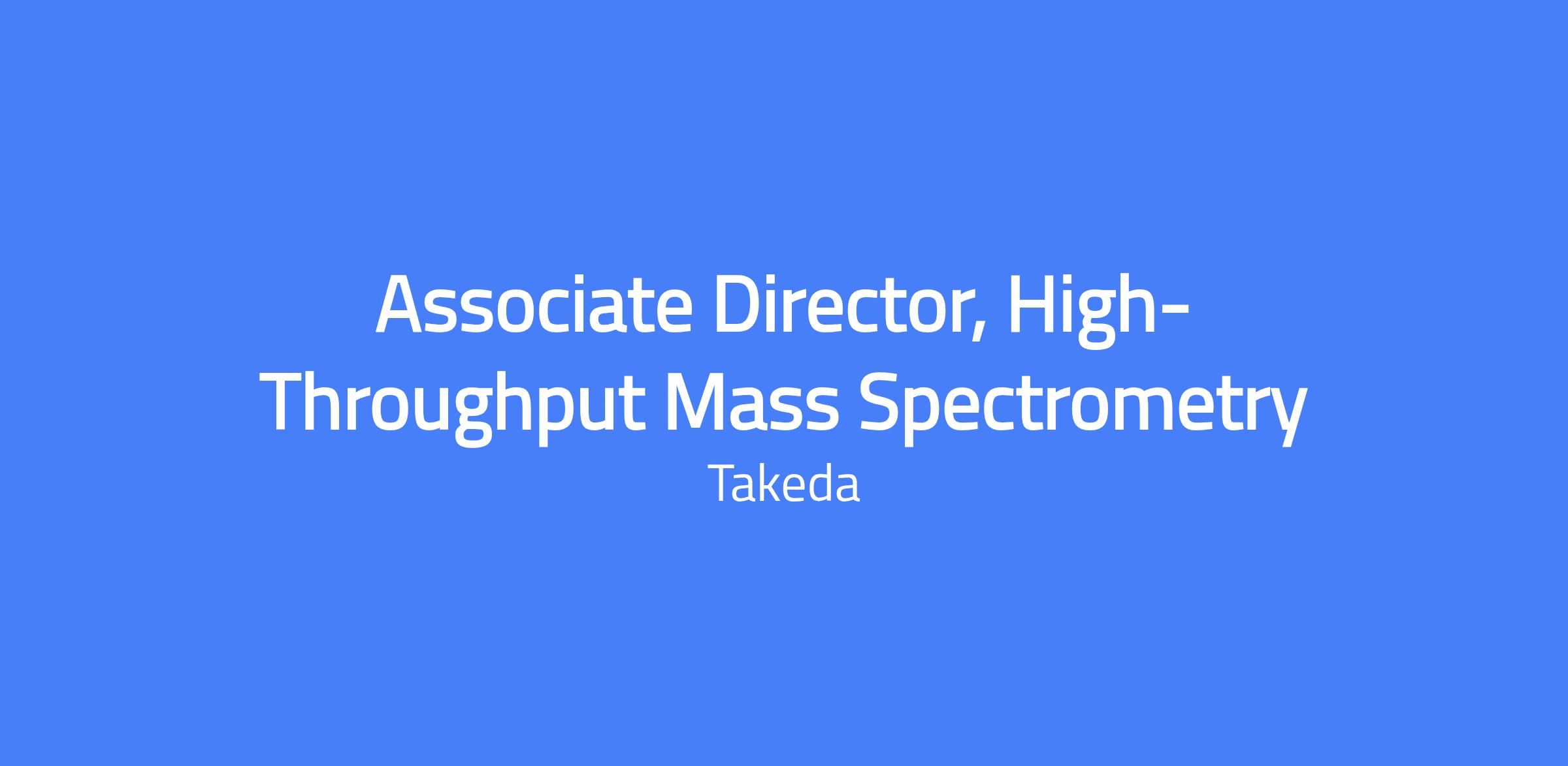 Associate Director High-Throughput Mass Spectrometry (Acoustic MS) within the Lead Profiling / DMTA team, responsible for developing, implementing, and running high-throughput mass spectrometry workflows to support lead profiling and ADME assays. You will be a key technical and strategic contributor enabling high-throughput, high-quality data generation for DMTA (Design–Make–Test–Analyze) cycles and will report to the Head of Lab Automation and Transformation. This role is central to shaping and scaling Takeda’s next-generation, automated screening and profiling capabilities.