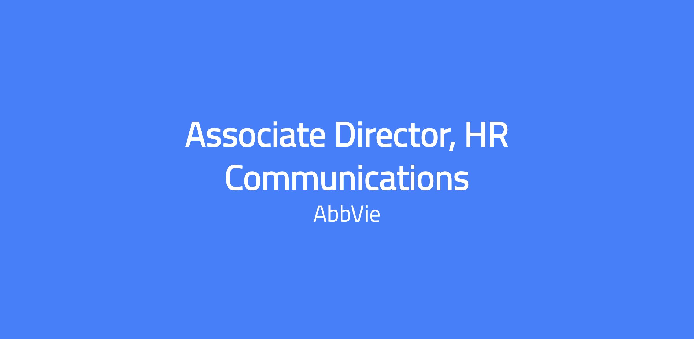AbbVie seeks a full-time Associate Director, HR Communications to develop and deliver communications strategies, execute enterprise communications, and guide senior leadership communications that drive awareness, foster understanding and inspire engagement in the companyโs culture and commitment to inclusion. The ideal candidate has experience developing strategic communications plans, senior leadership messaging and a variety of deliverables suitable for internal and external audiences. This role works collaboratively with Human Resources and other enterprise stakeholders to execute strategic communication imperatives across the business.