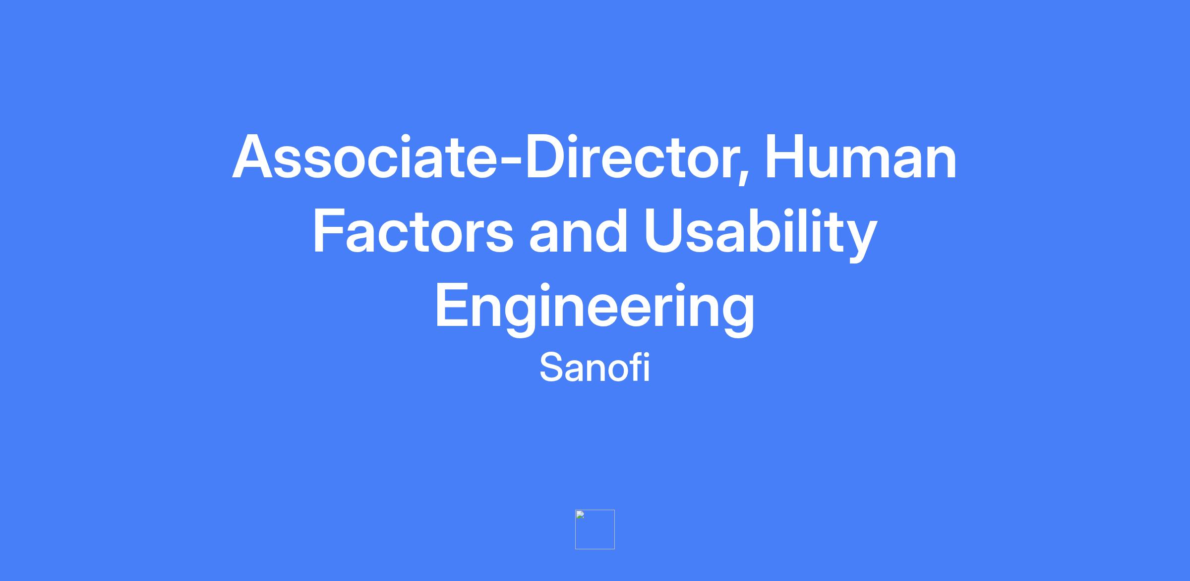 Associate-Director, Human Factors and Usability Engineering. Leads and executes HFUE activities, drives user-centric design, and optimizes product user-interface to ensure safety, effectiveness, and optimal user experience across the product pipeline. Oversees HFUE initiatives from early stage through development and life cycle management, delivering timely, rigorous results.