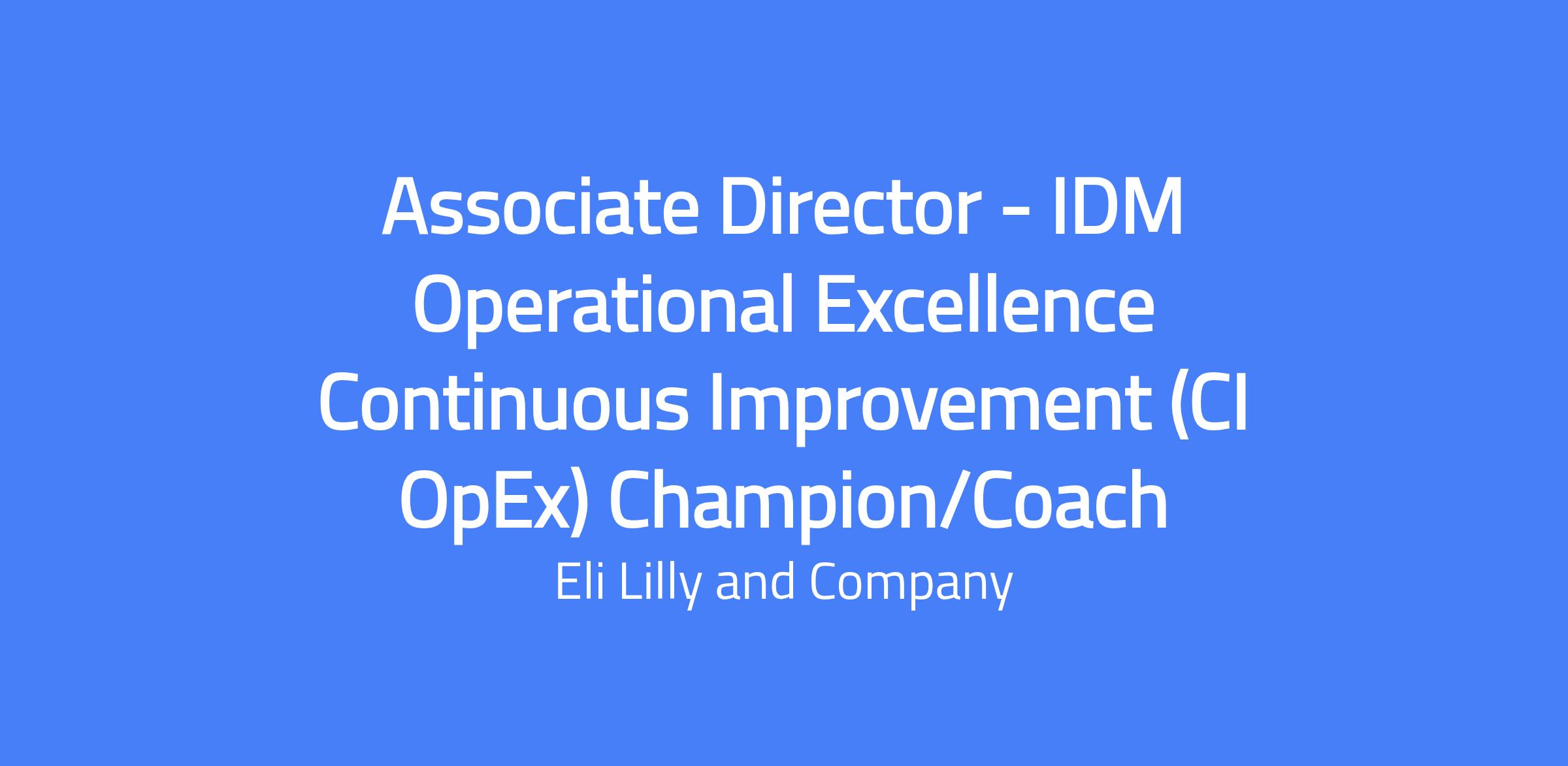 Associate Director - IDM Operational Excellence Continuous Improvement (CI OpEx) Champion/Coach