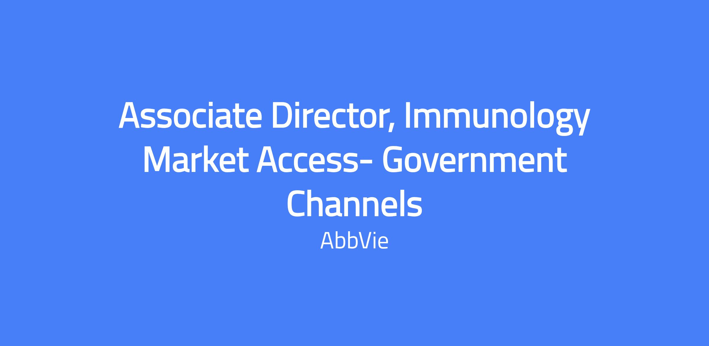 The Associate Director, Immunology Market Access - Government Channels leads development and execution of pricing, contracting, and messaging strategy for AbbVie's Immunology portfolio across government payers. The role focuses on Medicare, Medicaid, VA/DoD, and other payer customers to defend and expand SKYRIZI and RINVOQ access by anticipating contracting needs and delivering compelling narratives to optimize customer dynamics in a changing market. It also involves navigating and applying strategies related to government initiatives and utilization management to maximize portfolio value.