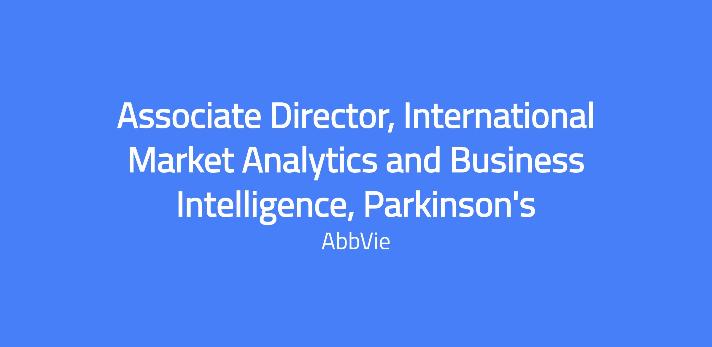 Associate Director, International Market Analytics and Business Intelligence (IMABI) – Parkinson’s disease (OUS)