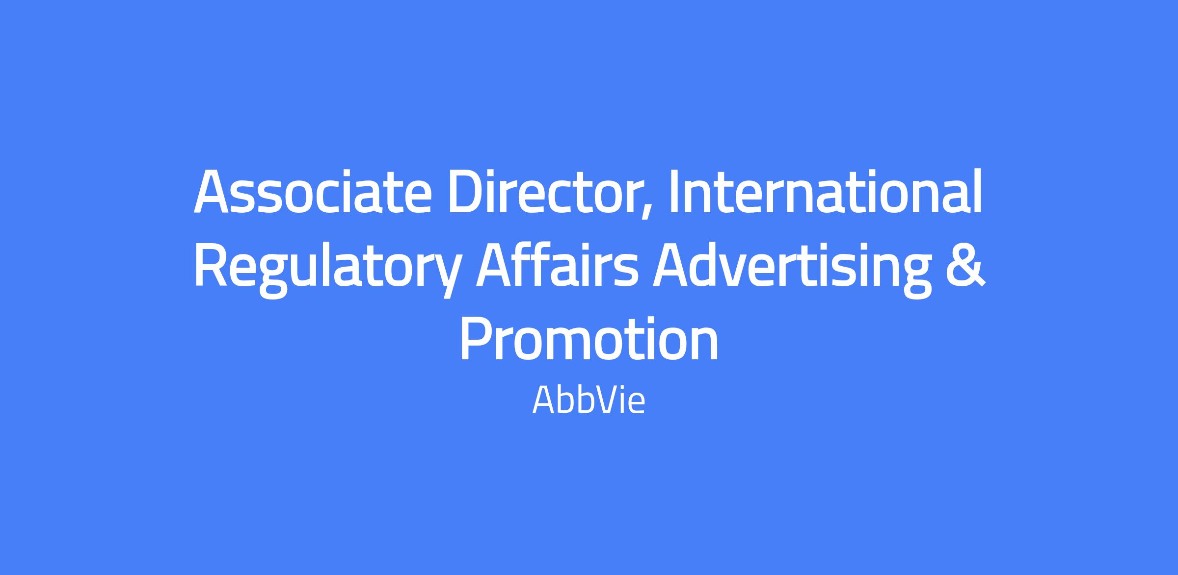 The Associate Director, International Regulatory Affairs Advertising & Promotion safeguards products and practices to adhere to the highest quality and regulatory standards. The role designs and delivers optimized global regulatory strategies, plans and dossiers that align with AbbVie’s overall business strategy, and leads the international regulatory strategy for the assigned marketed and development compounds. It implements regulatory advertising and promotion strategies for marketed and development compounds in alignment with the global regulatory strategy and global brand plan, and interfaces with International Marketing, Global Legal, and the Office of Ethics and Compliance regarding advertising and promotion tactics for global use.