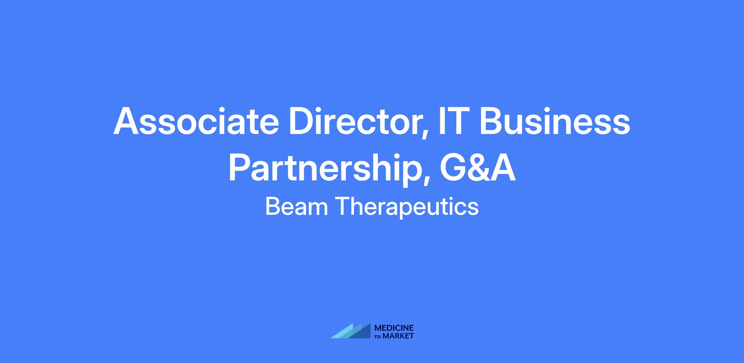 Associate Director, IT Business Partnership to lead the selection, implementation, and operational support of Beamโรรดs General & Administrative (G&A) portfolio of applications. Ensure financial, legal, procurement, operational/facilities and HR systems are aligned with business needs, compliant with industry regulations, and scalable for growth. Hybrid role based in Cambridge, MA with on-site requirement of 2 days per week.