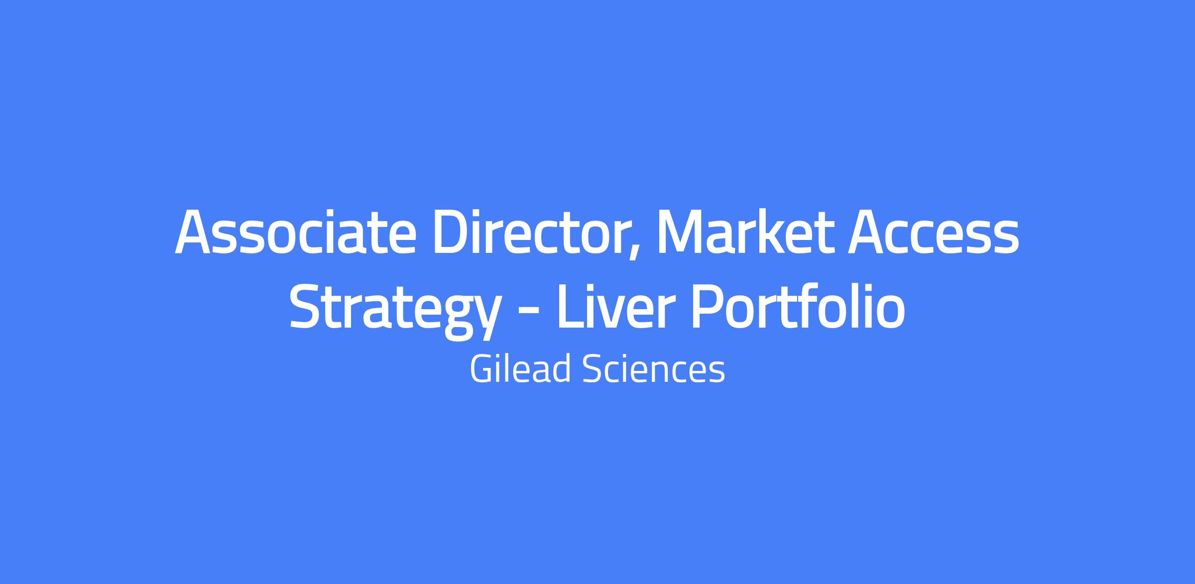 Associate Director, Market Access Strategy - Liver Portfolio. Lead cross-functional market access strategy and planning for the liver portfolio, including pricing, reimbursement, and access planning. Translate clinical and economic data into payer value propositions, and partner with HEOR, Medical Affairs, and CL&D to define evidence needs and support evidence generation and payer communications. Collaborate with Brand Teams and other functions to align market access activities with brand strategy and portfolio objectives. Location: Foster City. Travel: up to 10%.