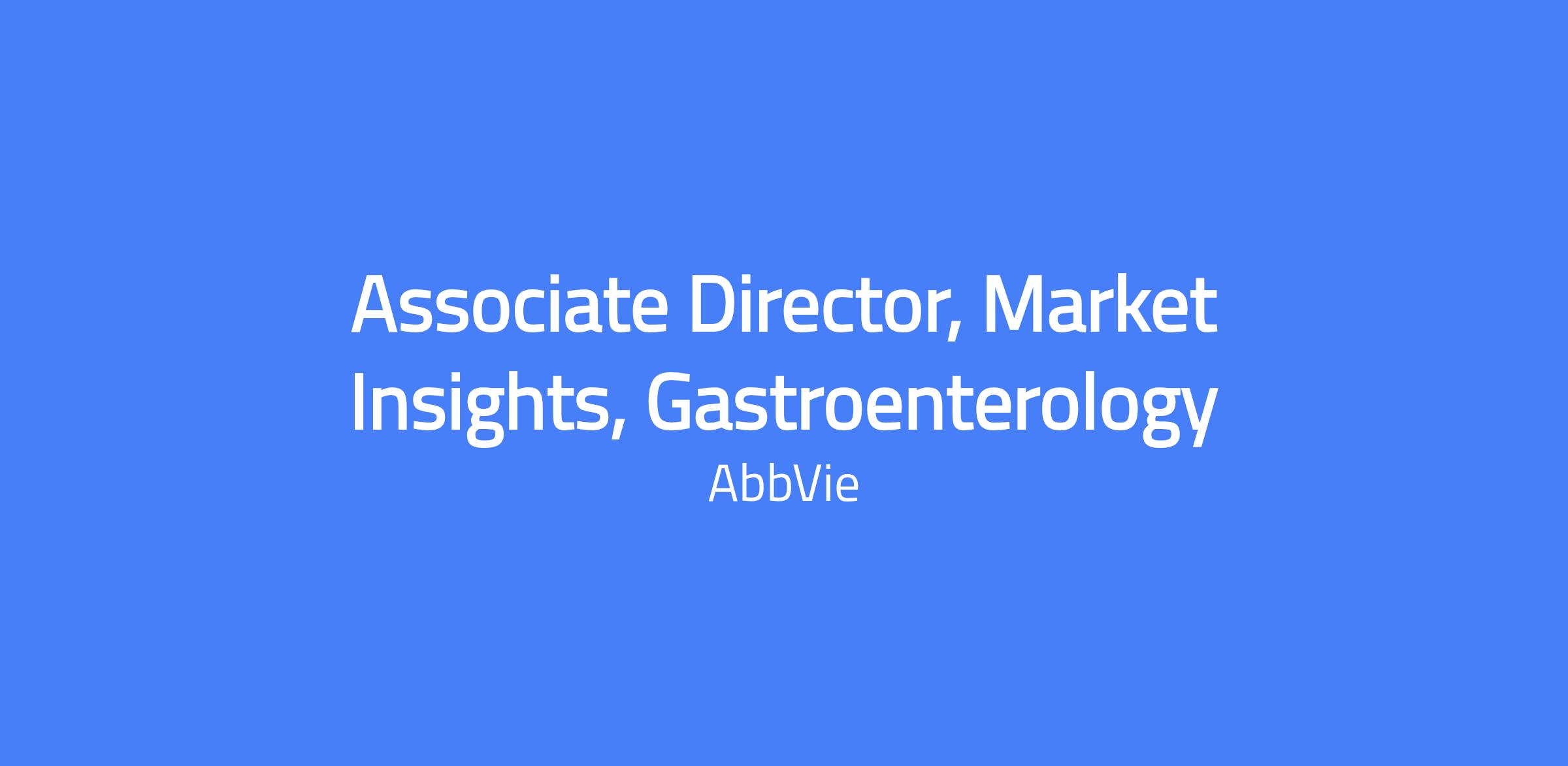 The Associate Director, Gastroenterology Market Insights, leads market research initiatives to support SKYRIZI and RINVOQ in Crohnβs disease and Ulcerative Colitis. This strategic role serves as a trusted advisor to brand leadership, translating customer insights into actionable marketing strategy. The role partners with the analytics team to tell a cohesive story about brand performance and identifies opportunities to accelerate growth. It also manages and develops a small team, coaching direct reports.