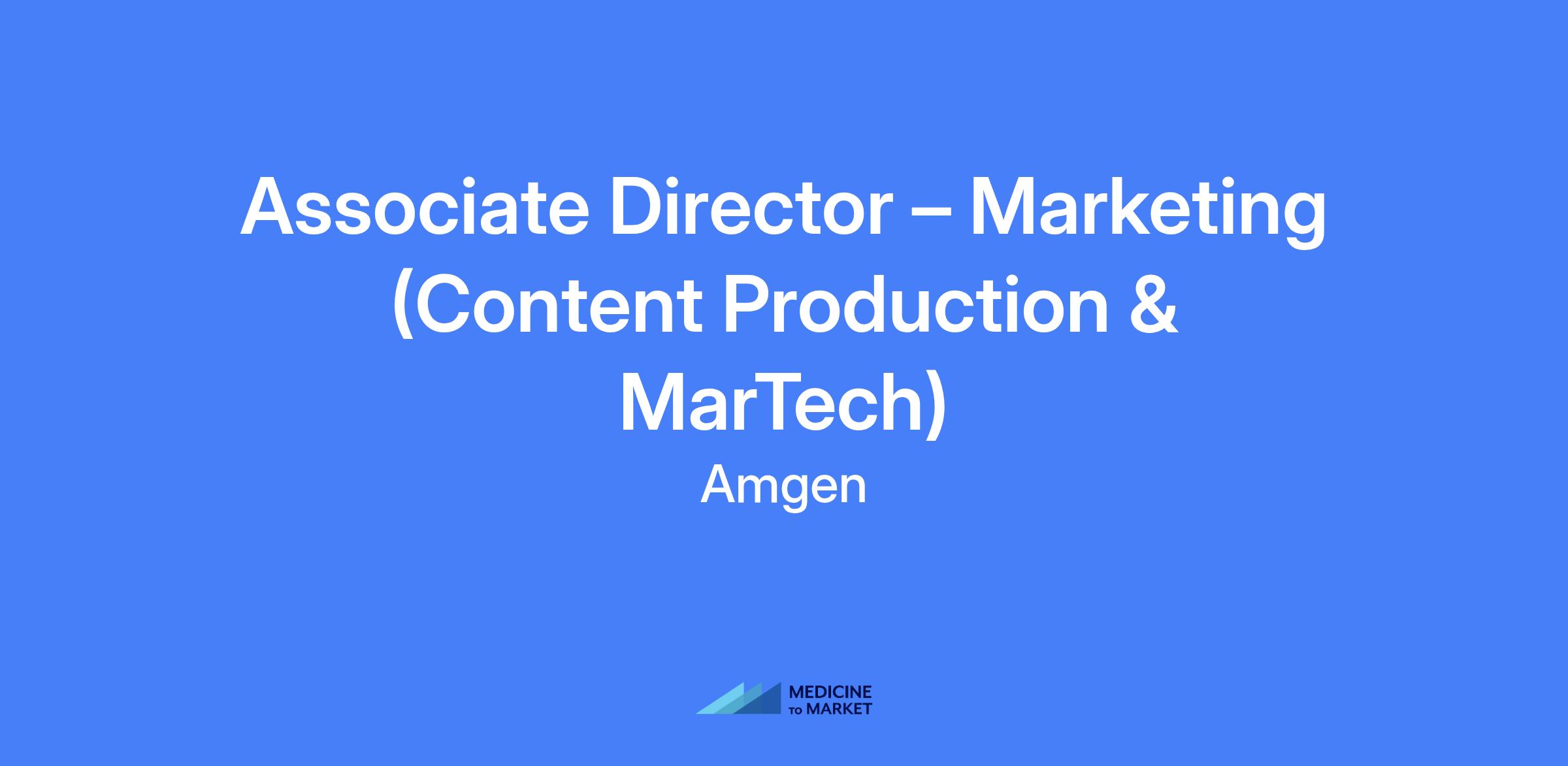Associate Director – Marketing (Content Production & MarTech) at Amgen, responsible for leading the global category strategy for Marketing Services with a focus on Content Production and MarTech. Reports to the Director, Business Partner, Media and MarTech Procurement (USA, Remote). Partner with Global Marketing, Brand, and enterprise technology teams to align sourcing with brand and enterprise marketing objectives to enable content agility, digital personalization, and optimized media performance.