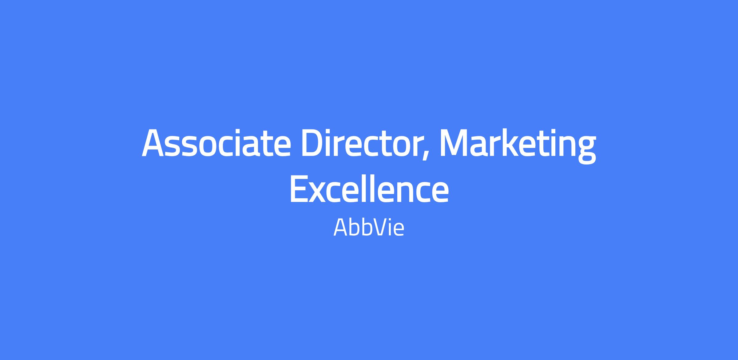 The Associate Director of Marketing Excellence will lead the development and execution of marketing excellence initiatives and training curriculum across AbbVie, focusing on building capabilities, driving commercial effectiveness, and increasing marketersโ digital literacy to deliver customer-centric, personalized marketing experiences. This individual will partner with Marketing Managers and Leaders throughout AbbVieโs portfolio, working closely to diagnose needs and develop solutions that advance marketing competencies and support the creation of a world-class marketing organization. Success in this role requires expertise in marketing, learning and development, and cross-functional collaboration.
