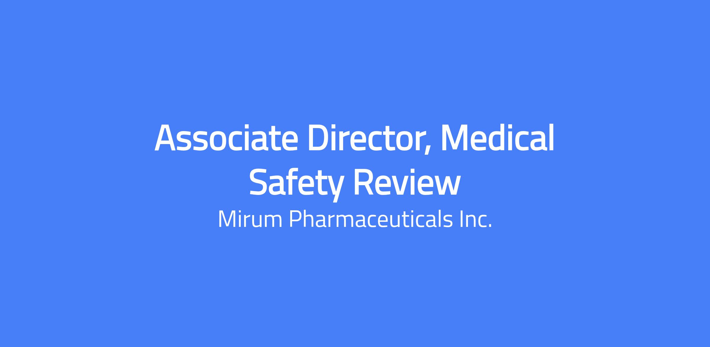 Mirum Pharmaceutical is seeking an Associate Director of Medical Safety Review. The ideal candidate will have experience performing activities related to ICSR medical review, evaluation of safety data, signal detection and preparation of aggregate reports. This role will report to the Director of Medical Safety Science