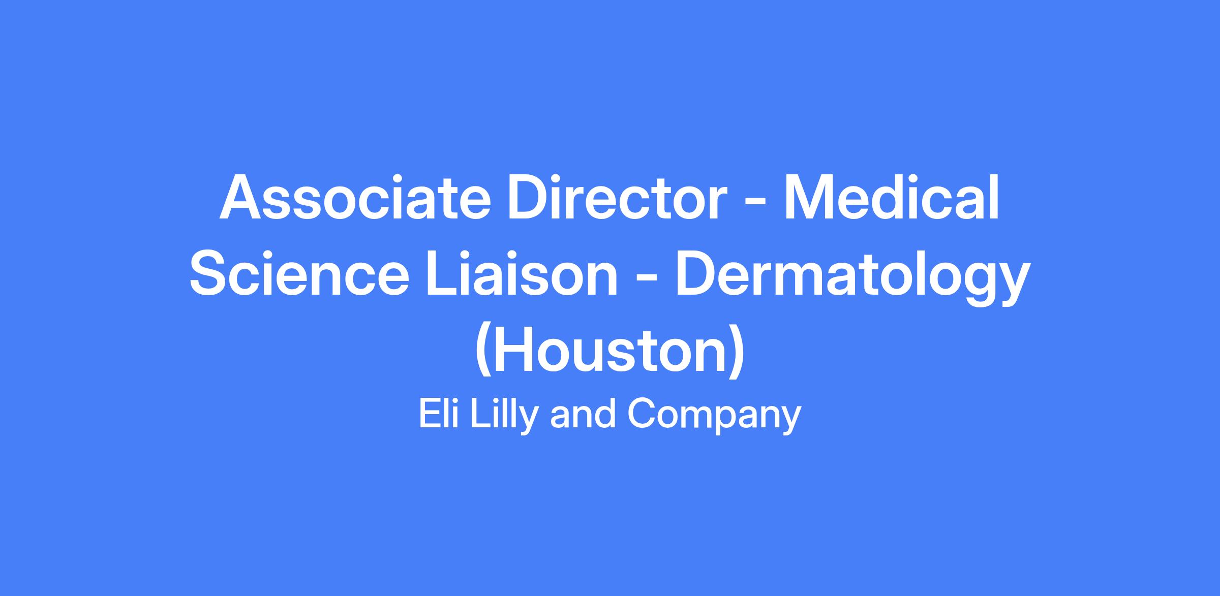 Associate Director - Medical Science Liaison - Dermatology (Houston) with Lilly. The MSL program engages field-based medical professionals to exchange scientific information with scientific experts, inform strategic direction for research and commercialization, and facilitate collaboration across Lilly resources. This role covers East and South Texas, including Houston, Austin, San Antonio, and other major cities along the Texas Gulf Coast. The MSL will act as a trusted medical resource, delivering unbiased, up-to-date scientific information to SEs/CEs and other stakeholders while maintaining compliance and fostering constructive partnerships.