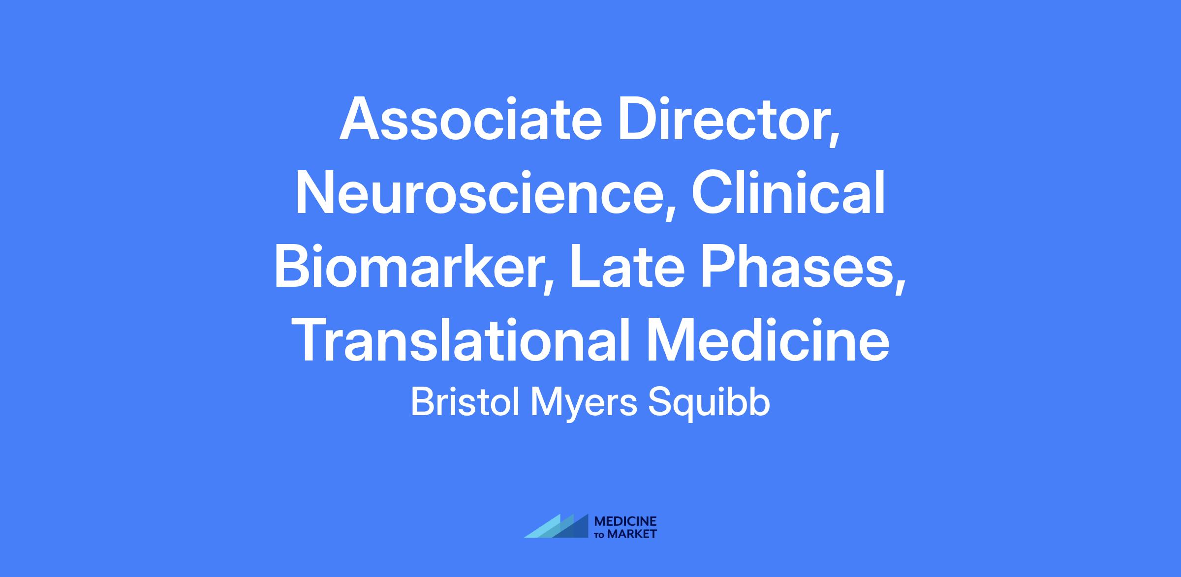 Associate Director, Neuroscience, Clinical Biomarker, Late Phases, Translational Medicine lead design and execution of program-specific late development biomarker and translational plans in neuroscience. Responsible for clinical protocol support, assay selection, vendor management, data delivery and analysis, and regulatory interactions in collaboration with translational science teams and CROs.