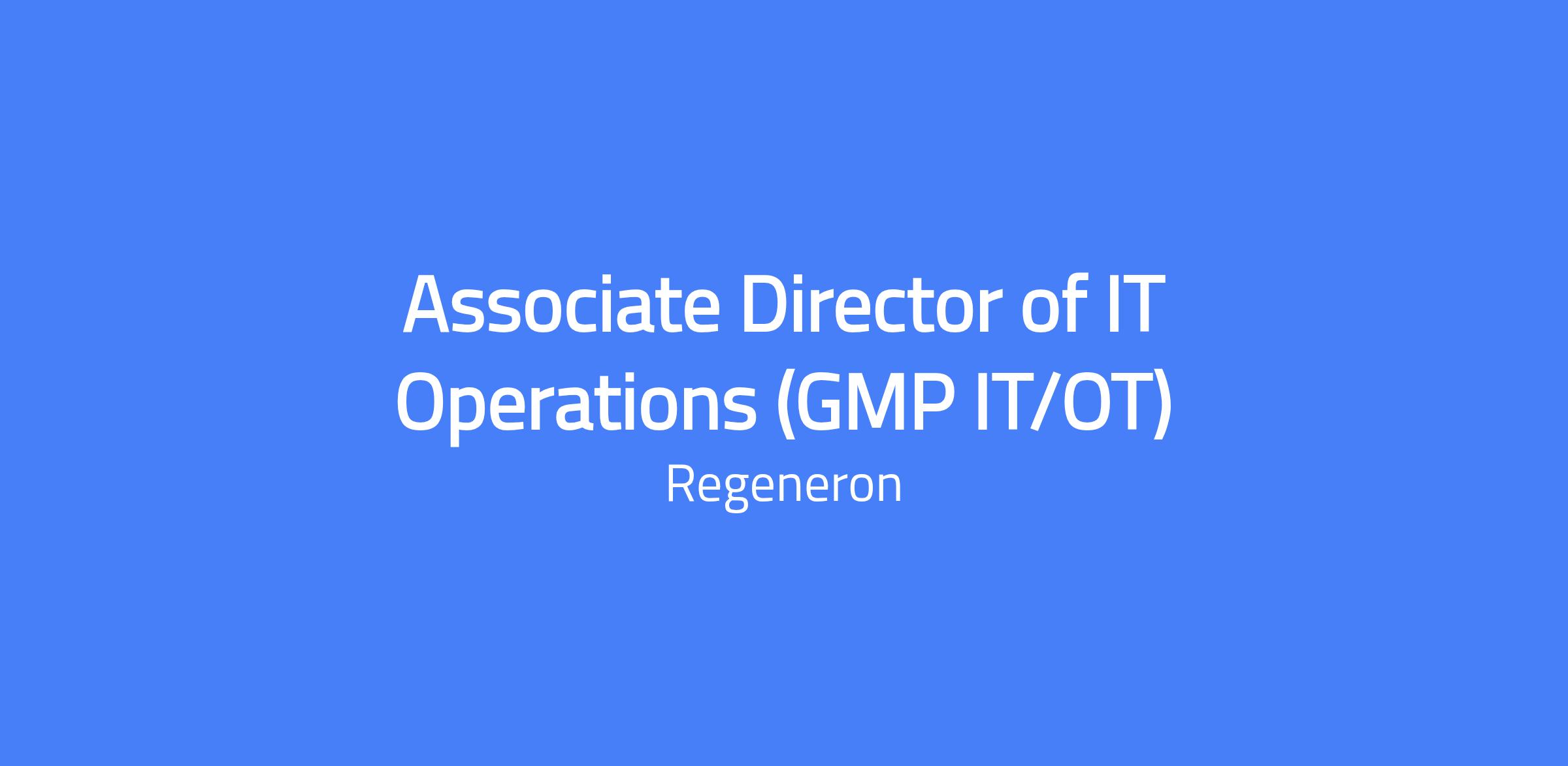 The Associate Director of IT Operations (GMP IT/OT) ensures the reliable operation, delivery, and management of IT/Operational Technology (IT/OT) infrastructure and services, with a focus on supporting a highly regulated GxP environment. This role provides strategic direction, operational management, and administrative oversight for the daily IT operational activities, including hardware, communications & WiFi infrastructure, and service delivery. The position also ensures integration and alignment with corporate IT systems and infrastructure while maintaining robust compliance, security, and service standards.