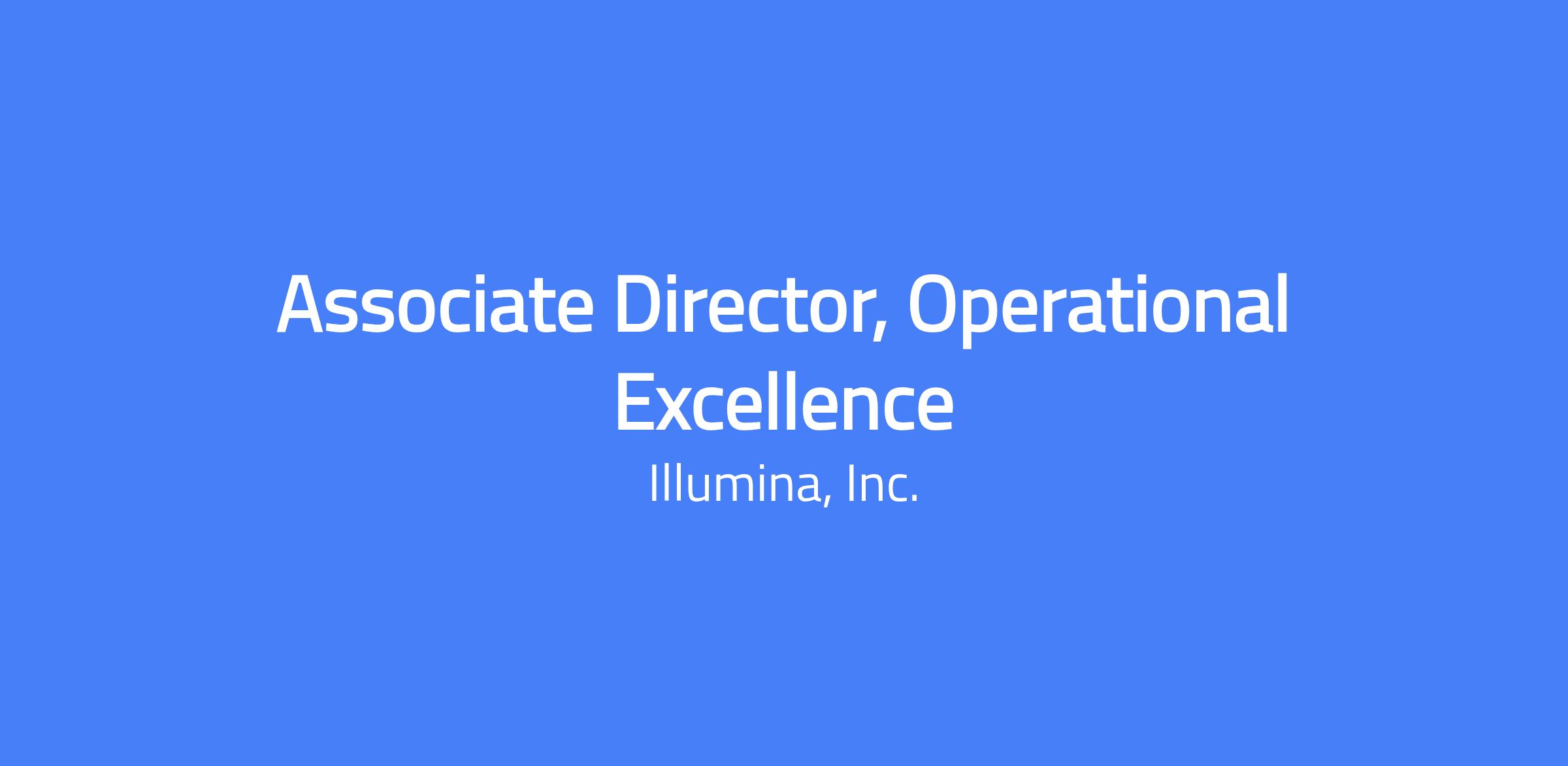 What if the work you did every day could impact the lives of people you know? Or all of humanity? At Illumina, we are expanding access to genomic technology to realize health equity for billions of people around the world. Our efforts enable life-changing discoveries that are transforming human health through the early detection and diagnosis of diseases and new treatment options for patients. Working at Illumina means being part of something bigger than yourself. Every person, in every role, has the opportunity to make a difference. Surrounded by extraordinary people, inspiring leaders, and world changing projects, you will do more and become more than you ever thought possible. The Associate Director, Operational Excellence is a pivotal leader and true partner across every function at Illumina. In this role, you’ll collaborate directly with the leadership team to drive high‑impact transformations that fuel our company strategy, deploy our Operational Excellence business systems, and build strong, self‑sustaining capabilities across the organization. This is an opportunity to be at the center of Illumina’s innovation engine — shaping how we operate, elevating our performance, and influencing the way teams across the company work and grow. You’ll thrive here if you love solving complex challenges, navigating across diverse disciplines, and empowering, inspiring, and mentoring teams to create smarter, simpler, more effective ways of working. At Illumina, your contributions directly support life‑changing science, and this role places you right where impact meets purpose. Responsibilities: Partner with Sr Leaders and their leadership teams in Lean/Operational Excellence system deployment and maturity Supports and leads complex improvement and optimization projects/initiatives in the areas of Safety, Quality, Productivity and Cost savings Conducts training in continuous improvement methodologies and mentor others in the application of these methods Facilitates/assists business process management and the teams supporting continuous improvement. Contributes to/Drives business process management and helps to ensure sites have installed and are effectively practicing business processes Coordinate stakeholders to develop area specific roadmap as part of site/functional strategy. Lead functions to development, implementation and monitoring of goals and KPI’s through strategy deployment Oversees functional Operational Excellence Project Portfolio and chairs the Operational Excellence Steering committee Promote site level communication and sharing through network. Requirements: Bachelor's Degree in a technical/quantitative field (PhD/MBA/MS preferred). 15 years of experience. >7 years in business process transformation/Operational Excellence deployment and >7 years of Operational Excellence program management experience. Preferred: Lean Six Sigma Blackbelt or Master Blackbelt certification Preferred: experience in a regulated healthcare environment. Preferred: AI and RPA automation experience or process mining experience Strong project management skills and adaptability to a fast-paced environment Demonstrated experience in driving continuous improvement culture and operating system across an enterprise and ability to navigate and influence across all levels of an organization, translating strategic vision into tangible outcomes Consistent track record of collaboration, including the ability to work with cross-functional teams, and across complex ecosystems Exceptional written and verbal communications skills (including articulating \ vision, inspiring teams, and presenting to senior executives). Strong sector and enterprise mindset, and strong business/financial acumen Strong negotiation and interpersonal skills Excellent stakeholder management and networking skills required The estimated base salary range for the Associate Director, Operational Excellence role based in the United States of America is: $178,800 - $268,200. Should the level or location of the role change during the hiring process, the applicable base pay range may be updated accordingly. Compensation decisions are dependent on several factors including, but not limited to, an individual’s qualifications, location where the role is to be performed, internal equity, and alignment with market data. Additionally, all employees are eligible for one of our variable cash programs (bonus or commission) and eligible roles may receive equity as part of the compensation package. We offer a wide range of benefits as innovative as our work, including access to genomics sequencing, family planning, health/dental/vision, retirement benefits, and paid time off. We are a company deeply rooted in belonging, promoting an inclusive environment where employees feel valued and empowered to contribute to our mission. Built on a strong foundation, Illumina has always prioritized openness, collaboration, and seeking alternative perspectives to propel innovation in genomics. We are proud to confirm a zero-net gap in pay, regardless of gender, ethnicity, or race. We also have several Employee Resource Groups (ERG) that deliver career development experiences, increase cultural awareness, and offer opportunities to engage in social responsibility. We are proud to be an equal opportunity employer committed to providing employment opportunity regardless of sex, race, creed, color, gender, religion, marital status, domestic partner status, age, national origin or ancestry, physical or mental disability, medical condition, sexual orientation, pregnancy, military or veteran status, citizenship status, and genetic information. Illumina conducts background checks on applicants for whom a conditional offer of employment has been made. Qualified applicants with arrest or conviction records will be considered for employment in accordance with applicable local, state, and federal laws. Background check results may potentially result in the withdrawal of 