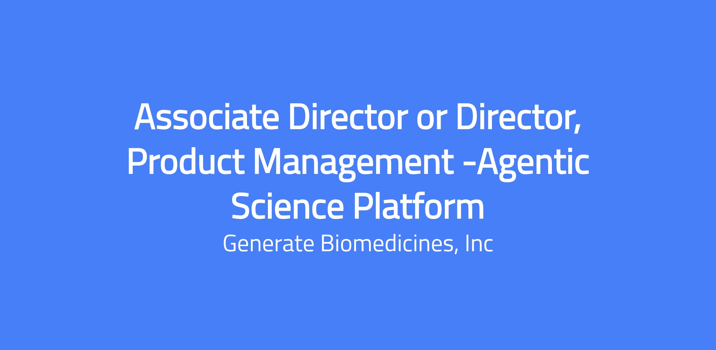 We are seeking a Product Leader to define and scale Generate’s Agentic Science Platform - building the infrastructure, tools, and ecosystem that enable AI agents to meaningfully accelerate drug discovery from early discovery through clinical development.