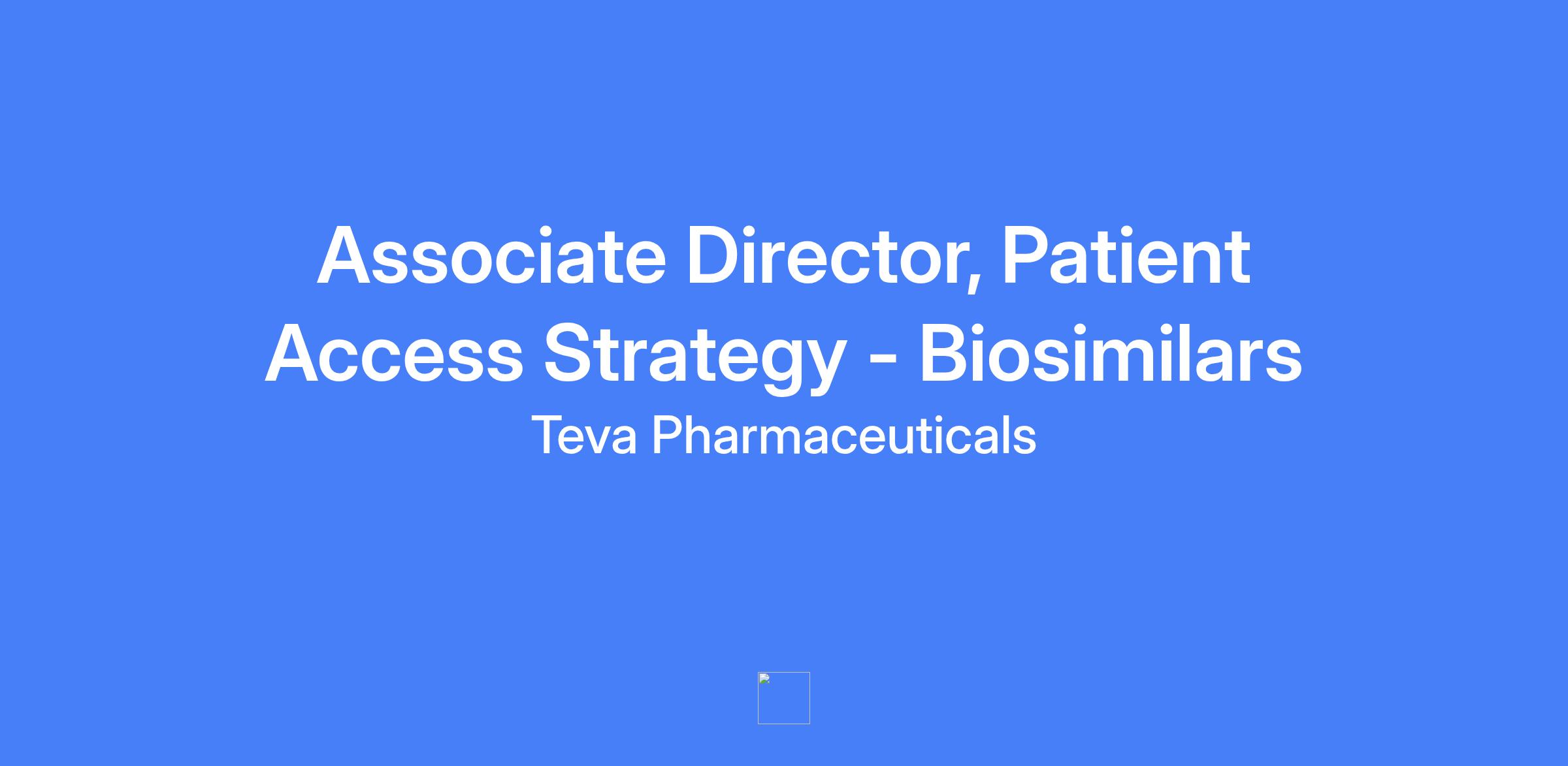 Associate Director, Patient Access Strategy - Biosimilars. Leads, develops, and implements strategies to maximize patient access to biosimilar therapies while minimizing GTN impact. Oversees vendor management, program design, compliance, financial management, data analytics, and program effectiveness across patient affordability and access initiatives. Hybrid role based in Parsippany, NJ.