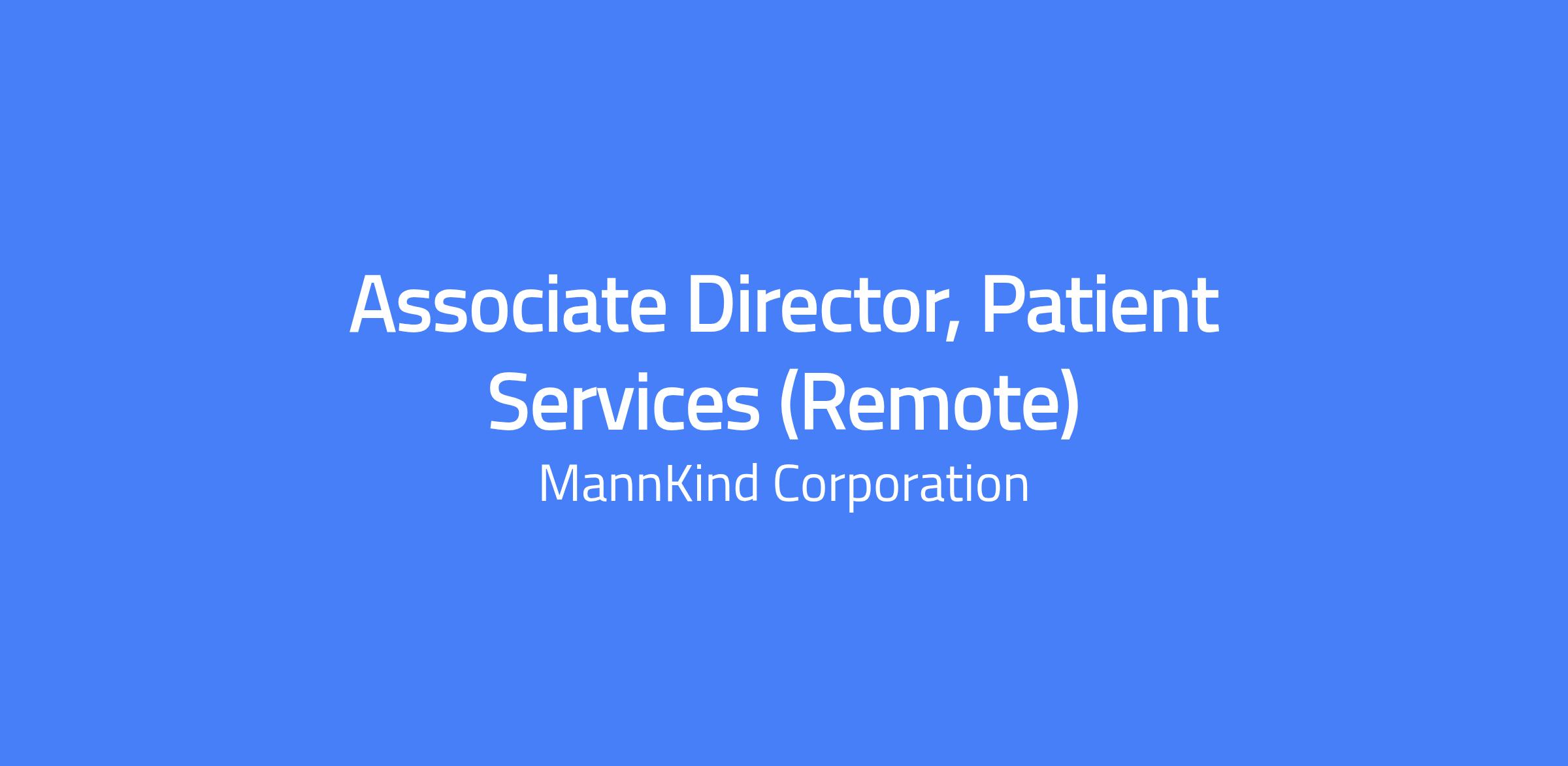 The Associate Director, Patient Services is responsible for executing Patient Services and HUB operations to support MannKind products. This role works cross-functionally across the organization to ensure strategies and tactics are aligned with patient needs and the brand strategy, and is responsible for managing the specialty pharmacies and HUB operations. Patient Services experience and expertise are required; the position reports to the Director, Patient Services. This role is remote-based with 35% travel.