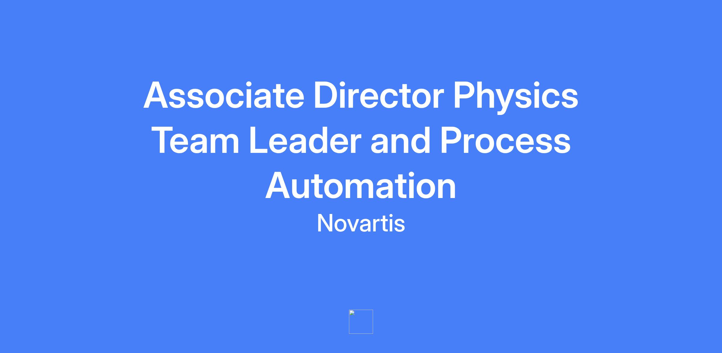 Associate Director Physics Team Leader and Process Automation. Location: Indianapolis, IN or Fort Worth, TX (onsite; not remote). Travel: up to 20% of time. Leads a Process automation and Physics Development Team focused on isotope production technologies, coordinating early process development and developability assessments of irradiation technologies. Reports to the Head of the Global Isotope Development Unit.