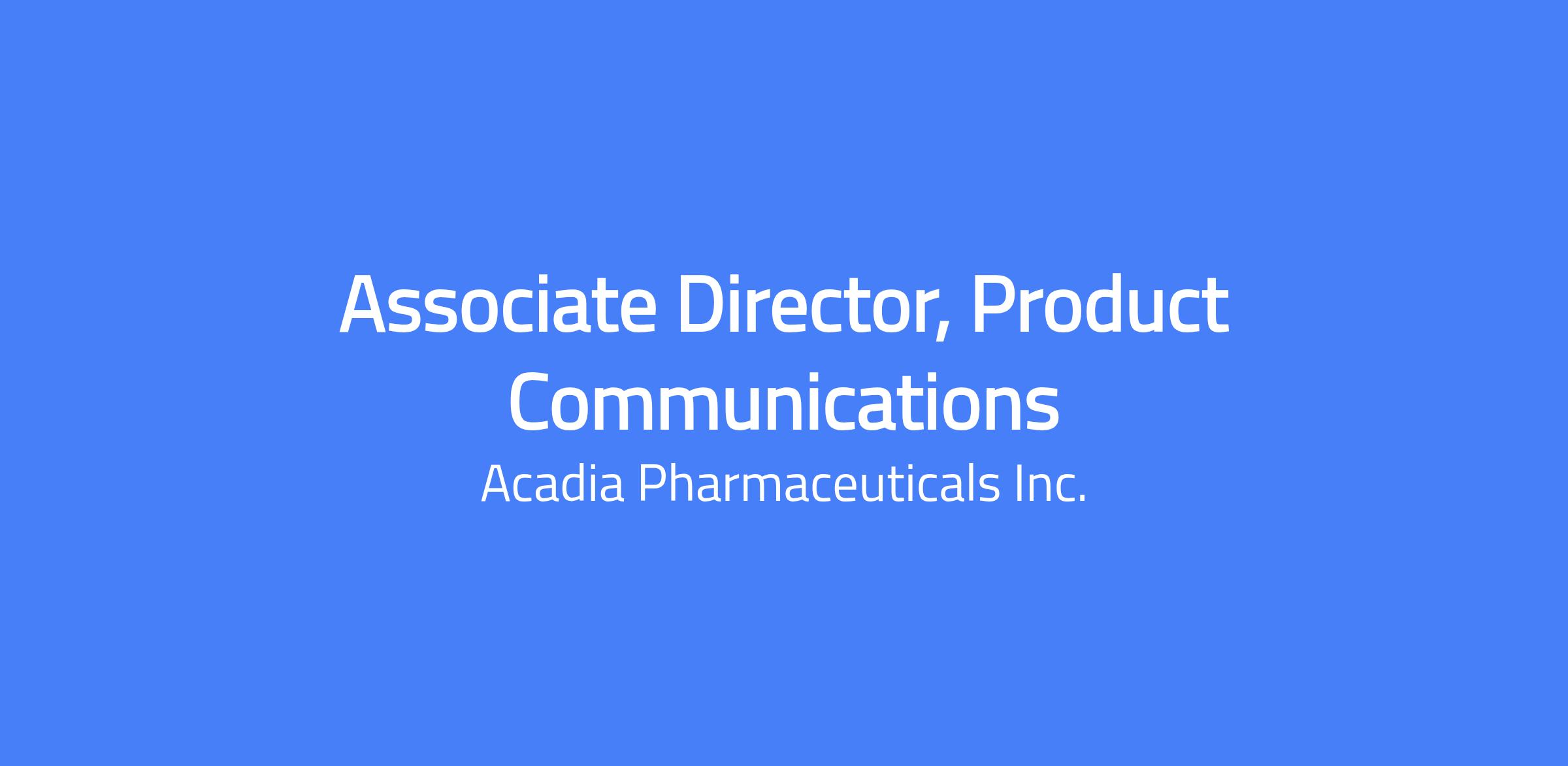 Acadia Pharmaceuticals is seeking an experienced and strategic communications leader to drive product communications for our marketed therapies, Nuplazid and Daybue. In this highly visible role, you will shape and execute communication strategies that elevate awareness, understanding, and credibility of Acadia’s medicines across neurology and rare disease. You will translate complex scientific and clinical data into clear narratives for external audiences including media, healthcare professionals, patients, and other stakeholders. Nuplazid (pimavanserin) is the first FDA-approved treatment for hallucinations and delusions associated with Parkinson’s disease psychosis, and Daybue (trofinetide) is the first and only FDA-approved therapy for Rett syndrome. This role reports to the Executive Director of Corporate Communications and collaborates with Commercial, Medical Affairs, Regulatory, Legal, and other cross functional teams to ensure accuracy, compliance, and alignment with business objectives. Location: San Diego, CA or Princeton, NJ; hybrid model with three days in the office on average.