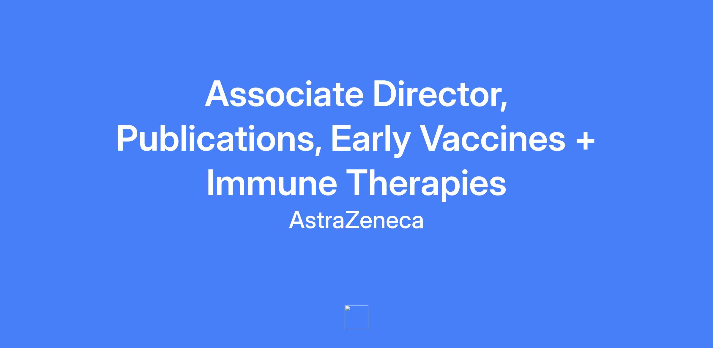 Associate Director, Publications in the Early Vaccines and Immune Therapies group, responsible for developing and executing strategic publication plans for pipeline products in early clinical development, and collaborating with cross-functional teams and external stakeholders to ensure transparent and balanced communication of data.