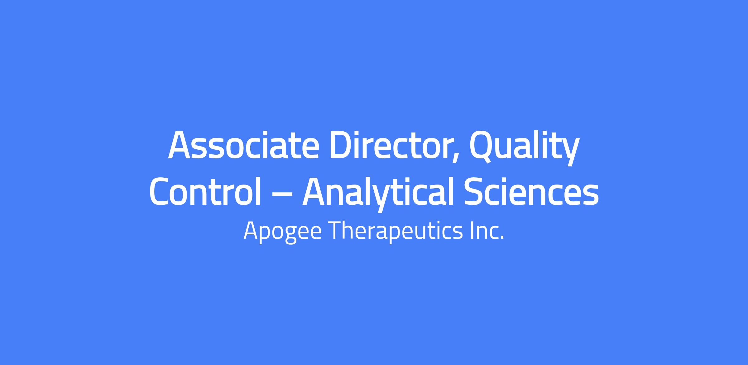 We are seeking an Associate Director to join the QC Analytical Sciences team in Analytical Development & Quality Control to lead the execution and provide technical and operational oversight of analytical testing to support product development and quality control activities across Apogee’s pipeline. This role focuses on performing and supporting QC testing, method lifecycle activities, and data review to ensure compliance with cGMP and regulatory requirements. Working closely with cross-functional teams and external partners, this individual will be an important member of the TechOps team, contributing hands-on expertise to product release, stability programs, and regulatory submissions across the development pipeline, by managing multiple parallel activities at all stages of product development.