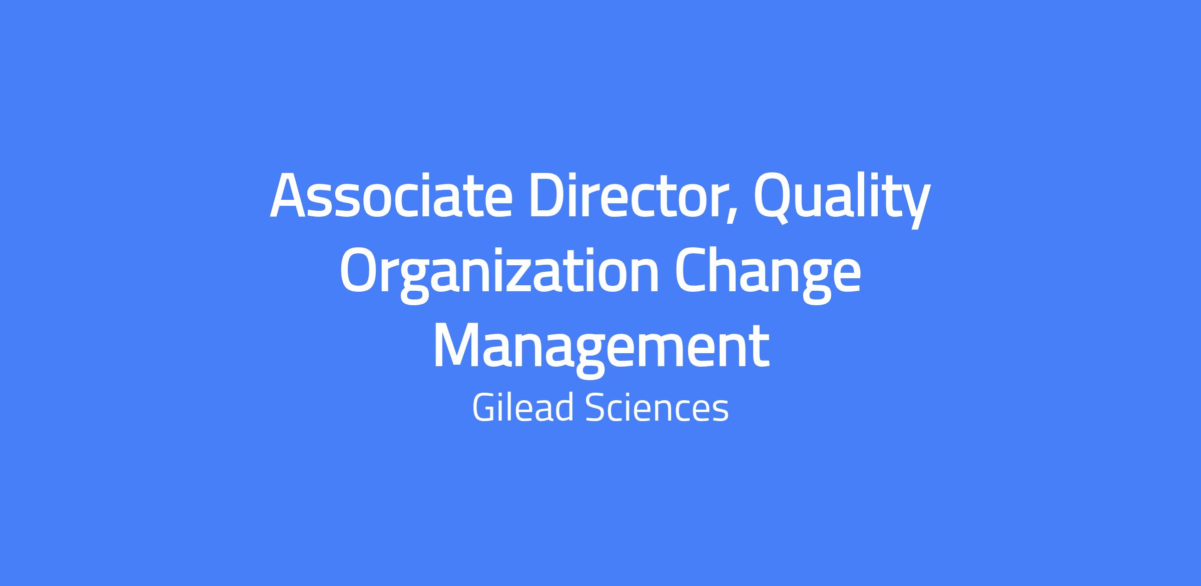 Role: Associate Director, Quality Organization Change Management (global quality initiatives)
