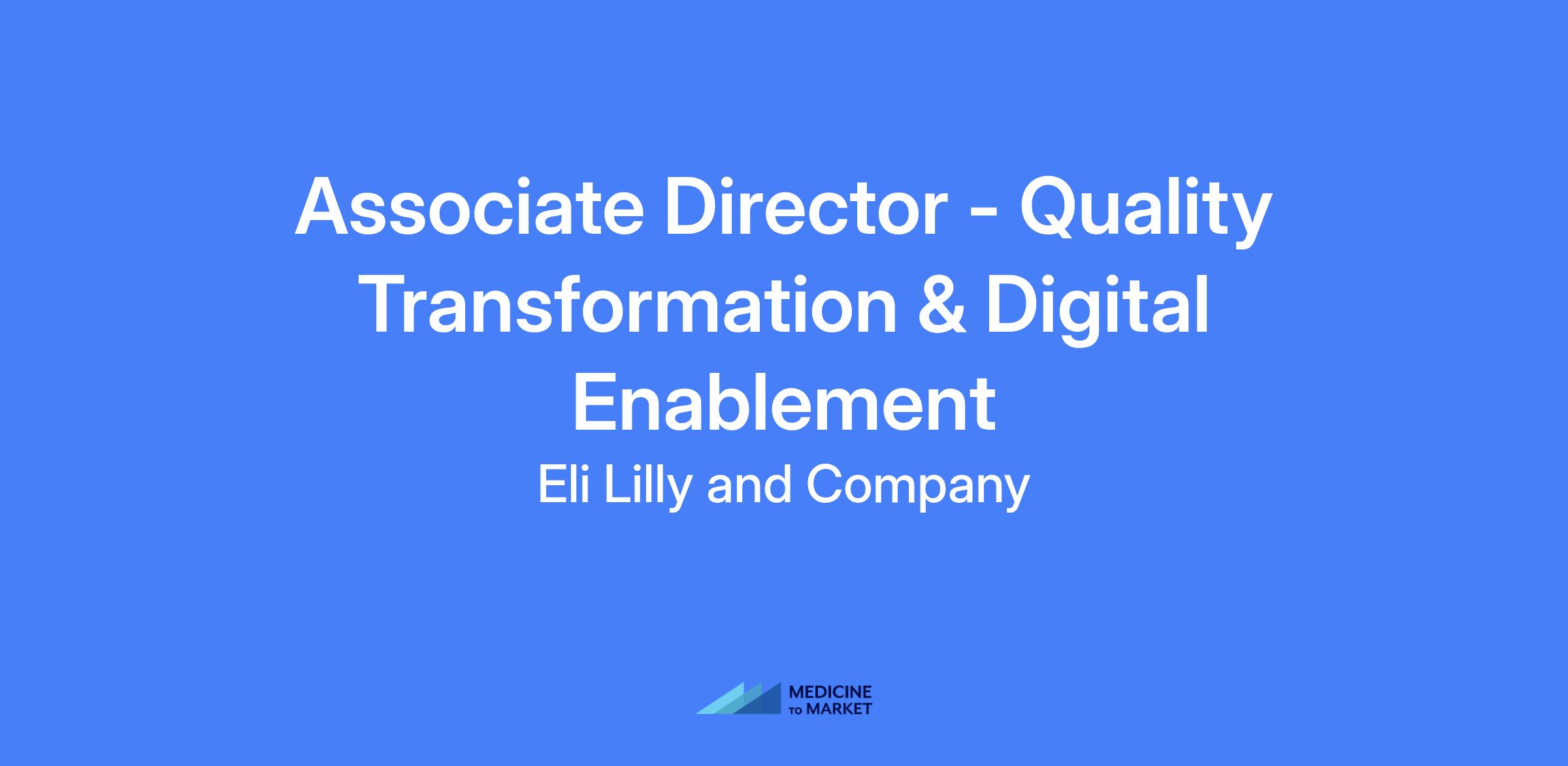 The Associate Director - Quality Transformation & Digital Enablement supports the integration of digital technologies and strategies that enhance performance, efficiency, and compliance across Eli Lillyโรรดs Global Quality organization. This individual contributor role focuses on day-to-day execution, program support, and cross-functional coordination to ensure digital initiatives are effectively implemented and adopted.