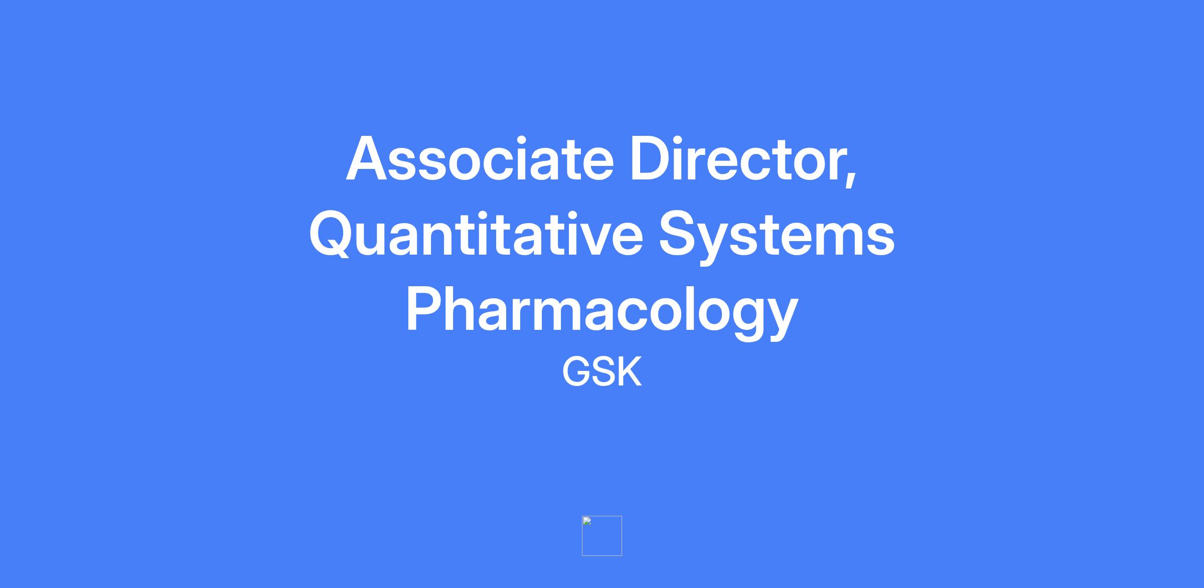 Associate Director, Quantitative Systems Pharmacology leading the Quantitative Systems Pharmacology team within CPQM at GSK. The role focuses on integrating clinical pharmacology, digital medicine, translational imaging, and mechanistic & systems modeling to advance Model-Informed Drug Development (MIDD) across Respiratory, Inflammation and Immunology Disease portfolio. The position emphasizes building mechanistic models, applying QSP/QST, and guiding end-to-end model-informed drug discovery and development to support decision-making from exploratory research through clinical development.