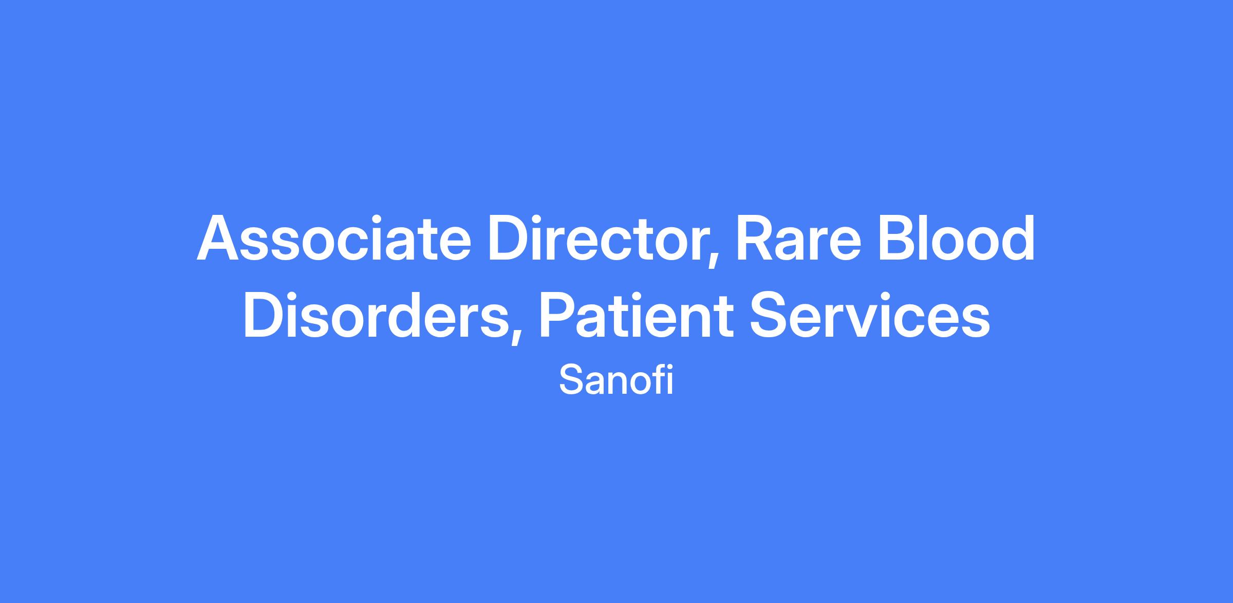 Associate Director, Rare Blood Disorders, Patient Services — Cambridge, MA. Responsible for the overall patient journey for Sutimlimab Blood Disorders Patient Solutions, assessing and implementing services and education to improve quality and efficiency, and ensuring patient engagement preferences are met. Lead day-to-day operations, vendor and performance management, and cross-functional collaboration to maintain compliance with SOPs and optimize patient and provider support programs.