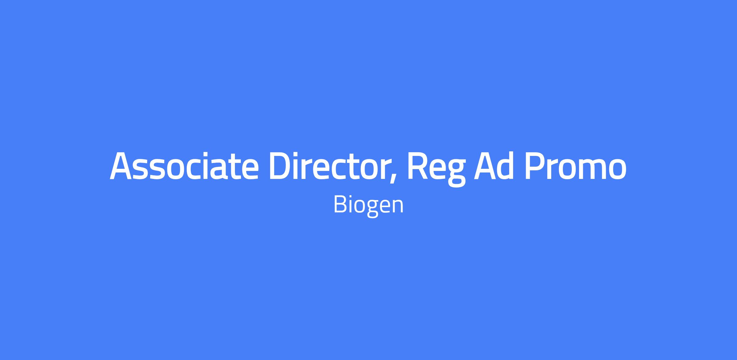 Associate Director, Reg Ad Promo provides regulatory strategic advice primarily for U.S. communications related to disease education, promotional materials, and medical/scientific materials for healthcare providers, payors, and patients in support of Biogen business objectives. The role may also review global, corporate, clinical trial, and pipeline materials. Partners with cross-functional stakeholders to ensure materials are competitive and compliant with applicable FDA regulations, PhRMA guidelines, and Biogen policies.
