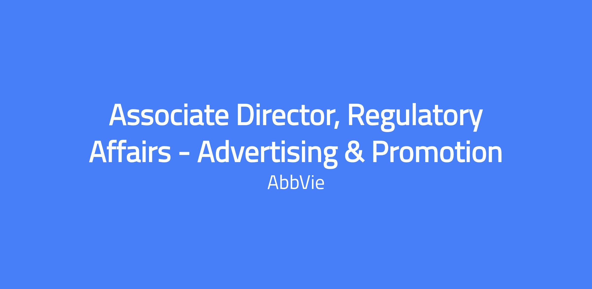 The Associate Director, Regulatory Affairs US Advertising and Promotion sets strategy, leads cross-functional, multidisciplinary teams, and drives multidivisional initiatives. The role analyzes issues and trends affecting the business, identifies cross-organizational opportunities, and applies broad industry knowledge to guide regulatory strategy for advertising and promotions. This position is hybrid (3 days in office) based at AbbVie Mettawa, IL or Florham Park, NJ.