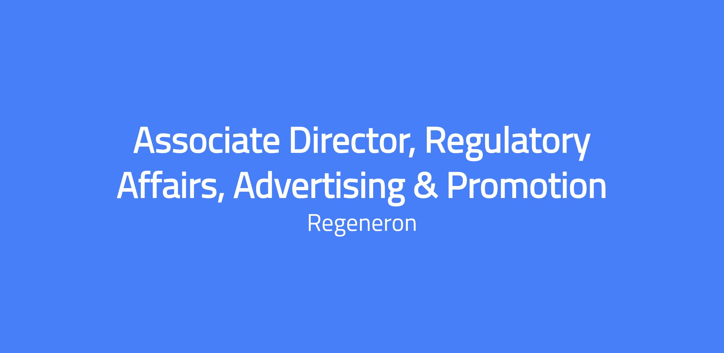 Regeneron's Regulatory Affairs Organization is seeking an Associate Director to join the Advertising & Promotion team. This role applies clinical development knowledge with advertising and promotion regulations to develop key product messages for regulatory submissions such as BLAs and MAAs, and to guide promotional activities in line with regulatory and corporate objectives.