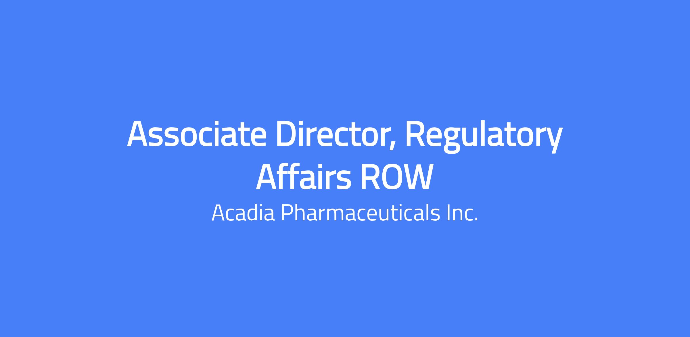 The Associate Director, Regulatory Affairs ROW is responsible for helping build and execute on global regulatory strategy, objectives, policies and programs pertaining to development and marketing of Acadia products, including regulatory compliance for advertising and promotion of marketed products. This role also supports compilation of regulatory documentation to support ex-US/EU regulatory development and marketing submissions, and supports regulatory needs for regional access and commercialization efforts. Based in Princeton, NJ, with a hybrid model requiring approximately 3 days per week in the office.