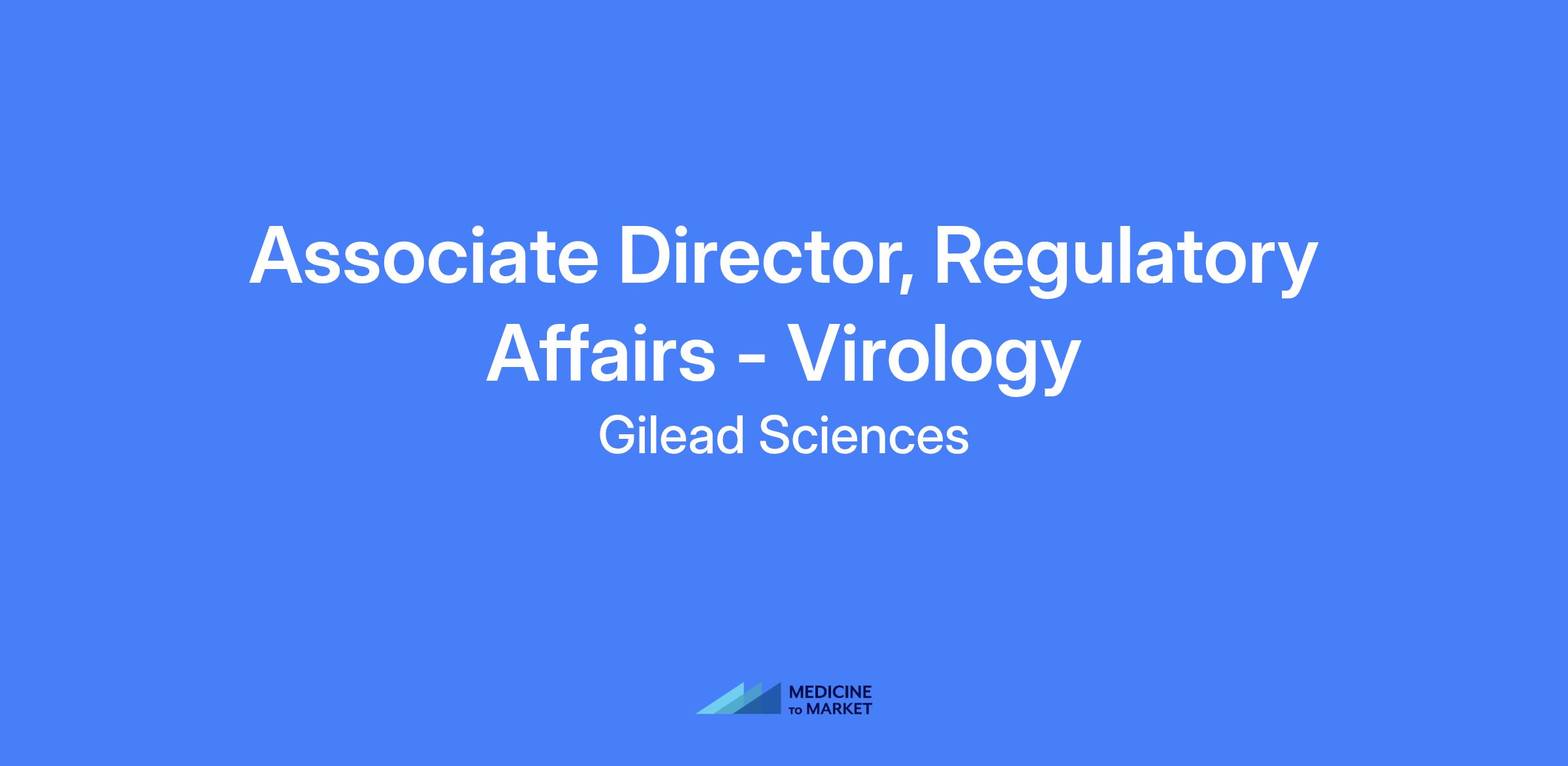 Associate Director, Global Regulatory Affairs in the virology therapeutic area. Lead regulatory strategy, plans, and objectives for assigned products or projects; may act as Global Regulatory Lead for early-stage programs; oversee regulatory submissions, labeling, and packaging; lead Regulatory Submission Teams and cross-functional teams; represent regulatory authorities to regulators as needed.