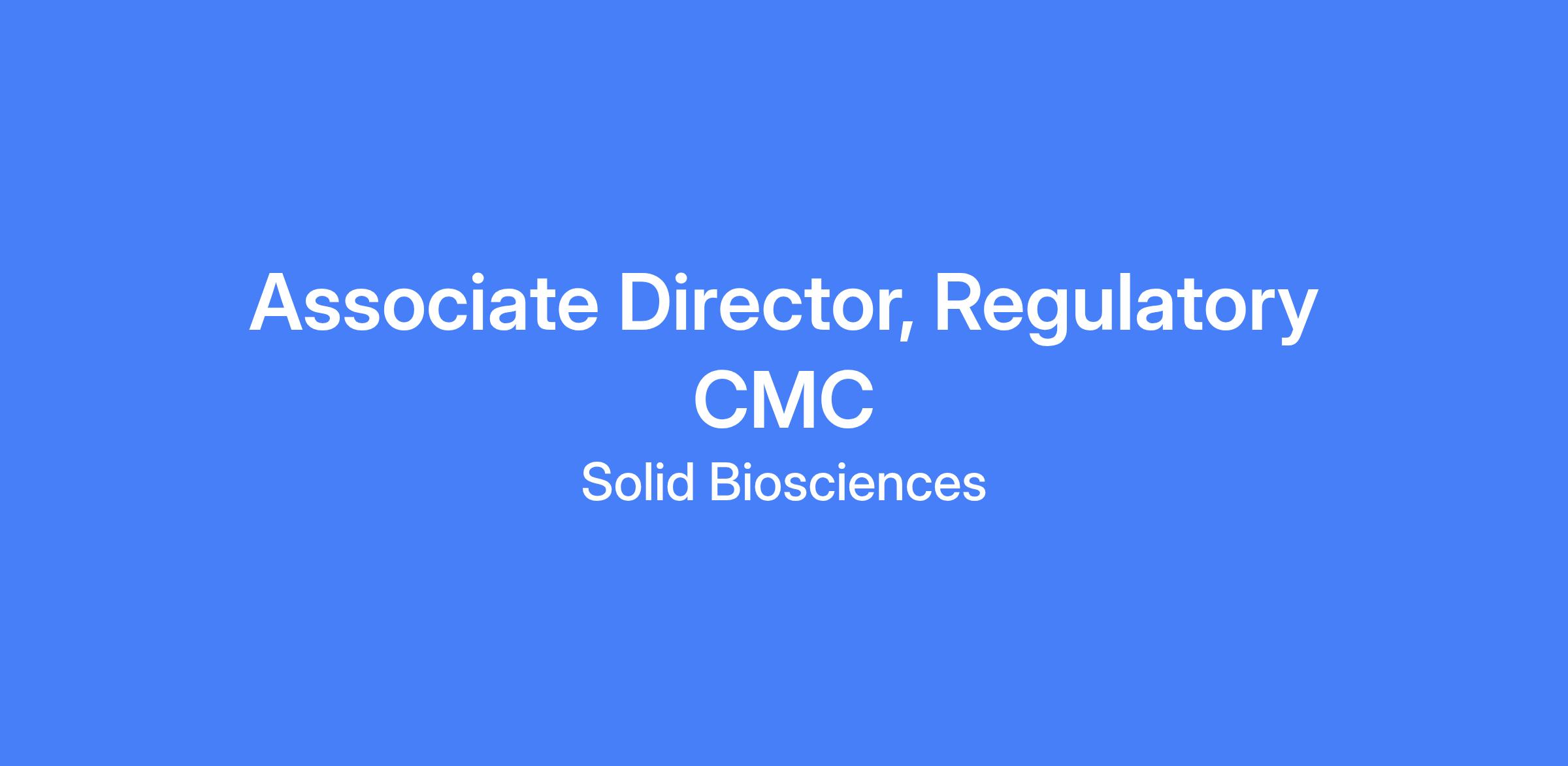 Associate Director, Regulatory CMC β Charlestown, MA. Lead regulatory CMC activities for gene therapy programs, partnering across interdisciplinary teams and external partners. Drive global regulatory CMC strategies, contribute to agency interactions and submissions, and participate in industry trade groups to influence the broader regulatory community. This role supports later-stage development of programs such as SGT-003 and reports to the Head of Regulatory CMC with a hybrid work arrangement.