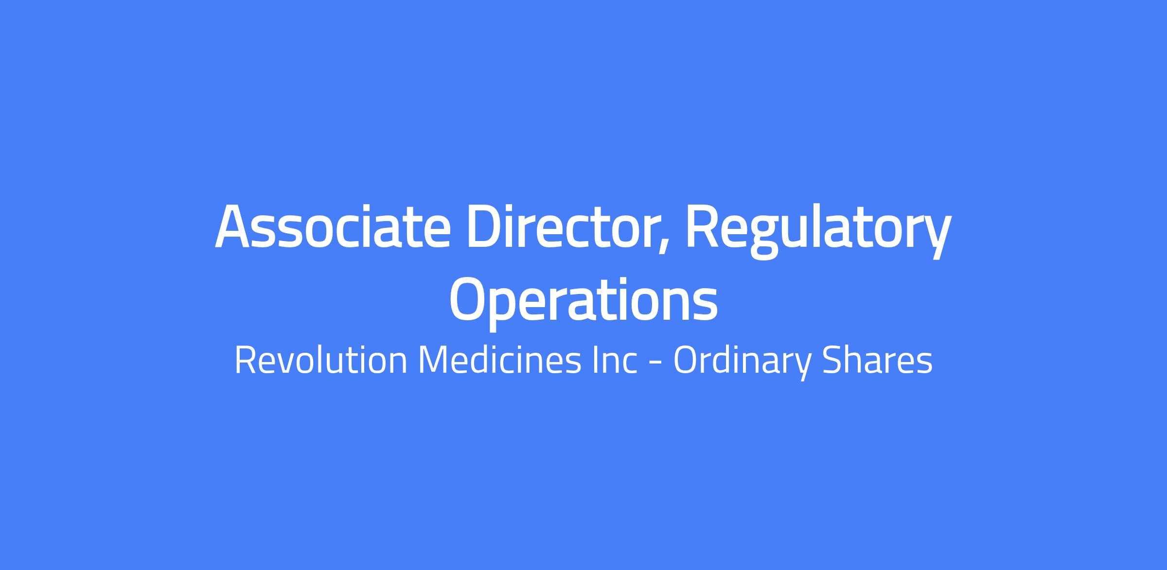 Revolution Medicines is an equal opportunity employer and prohibits unlawful discrimination based on race, color, religion, gender, sexual orientation, gender identity/expression, national origin/ancestry, age, disability, marital status, medical condition, and veteran status.