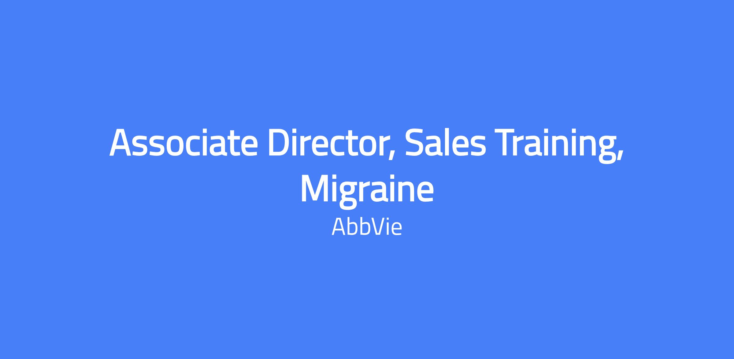 The Associate Director, Sales Training, Migraine collaborates closely with the Director of Sales Training, the Sales Training team, Sales Leadership, and Brand Leadership to recommend and direct strategic and tactical training for the U.S. Commercial Migraine Sales organization. This position includes supporting the current Migraine portfolio and developing training for the pipeline. The Associate Director, Migraine, will also work closely with Medical, Regulatory, Legal, Compliance, Business Human Resources, and Talent Acquisition. They must be confident in and comfortable with cross functional team structure and adept at collaboration and influence management.