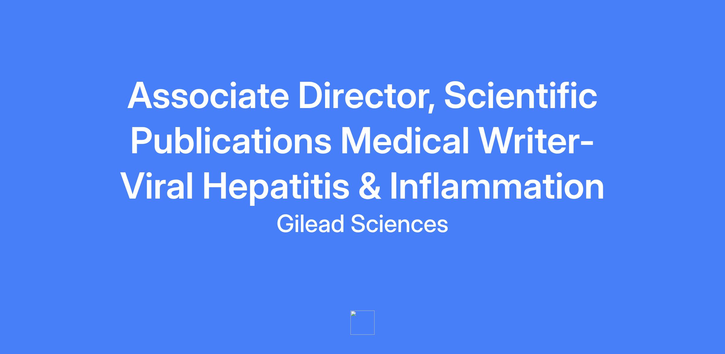 Associate Director, Scientific Publications Medical Writer-Viral Hepatitis & Inflammation. The role focuses on developing and communicating scientific publications in Viral Hepatitis, Chronic Liver Diseases, and Inflammation, collaborating with cross-functional teams, thought leaders, and external audiences while adhering to industry guidelines and maintaining high standards of accuracy.