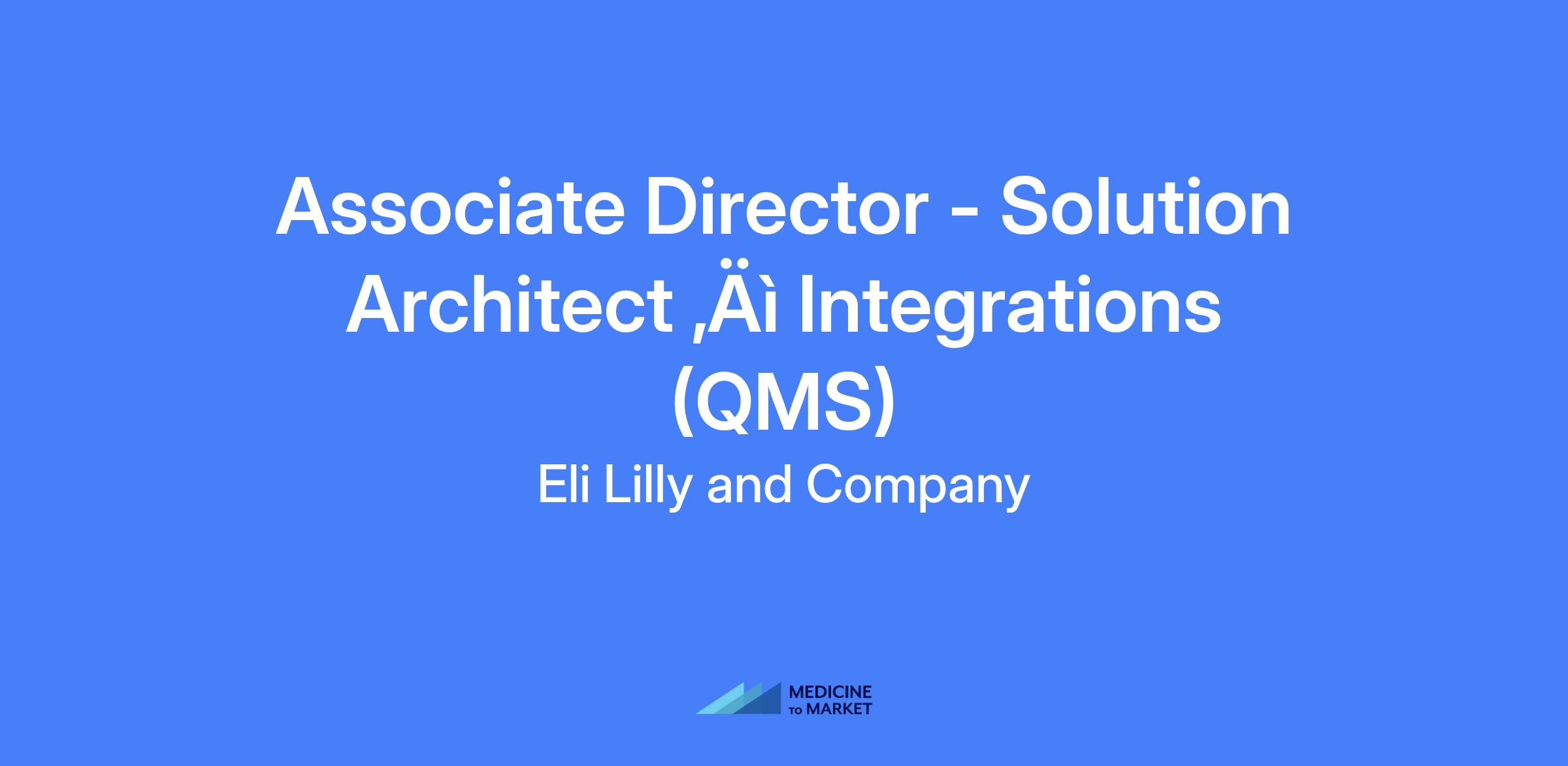 Associate Director - Solution Architect – Integrations (QMS) leading the Integration Workstream within Lilly's QMS transformation program. Define and guide architecture for integration solutions, ensure scalability, security, and alignment with enterprise standards, and collaborate with cross-functional teams to deliver future-ready solutions that support business transformation.
