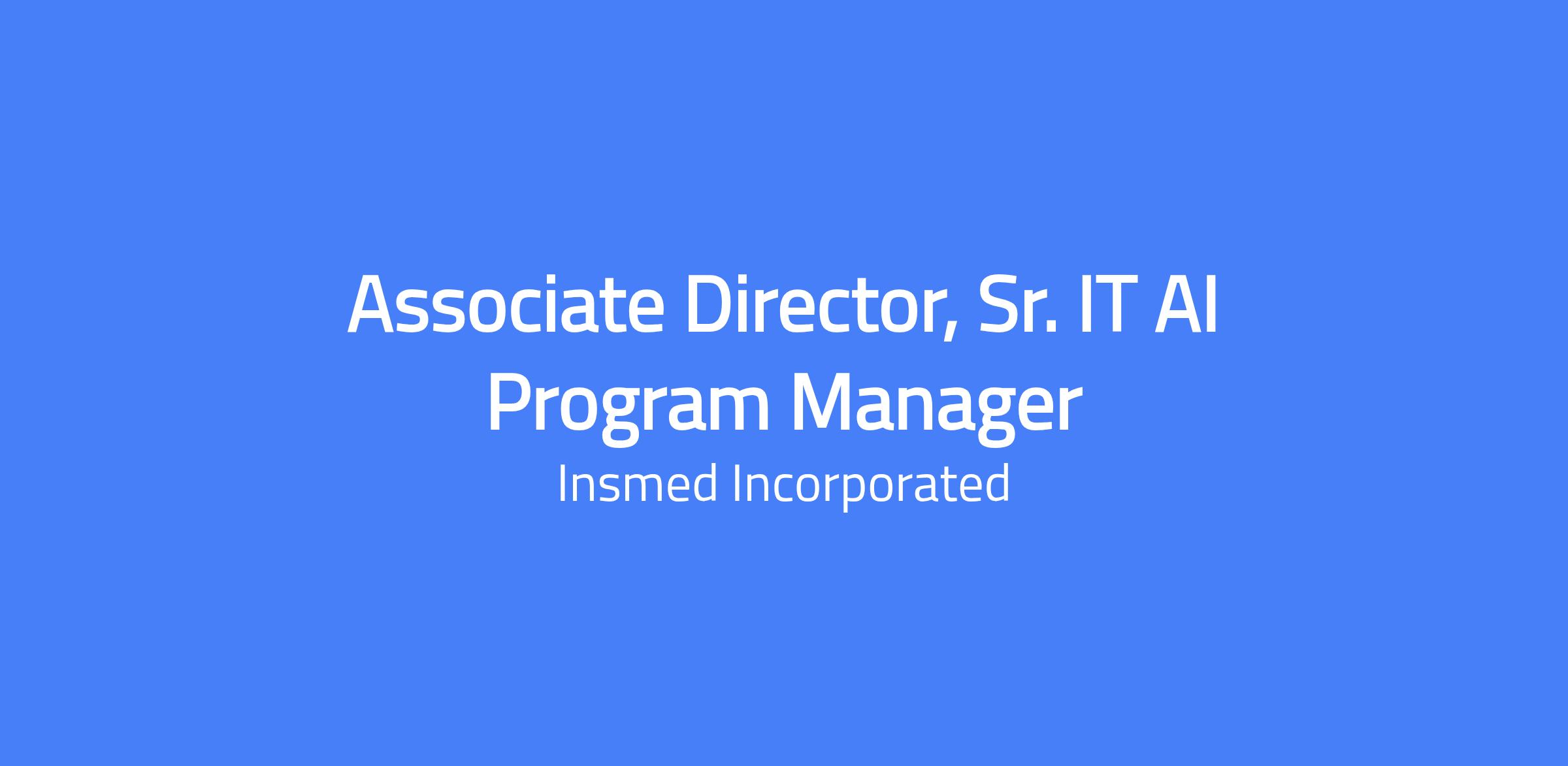 Associate Director, Sr. IT AI Program Manager responsible for leading and organizing Insmed’s Artificial Intelligence portfolio within the IT Program Management Office. The role focuses on portfolio orchestration and program maturity, providing structure, cadence, and guidance across AI initiatives to organize, sequence, and advance work in a disciplined way. You will partner with delivery managers, IT business partners, and functional teams to translate strategic direction into a well-governed AI portfolio and coordinate portfolio-level planning and governance inputs.