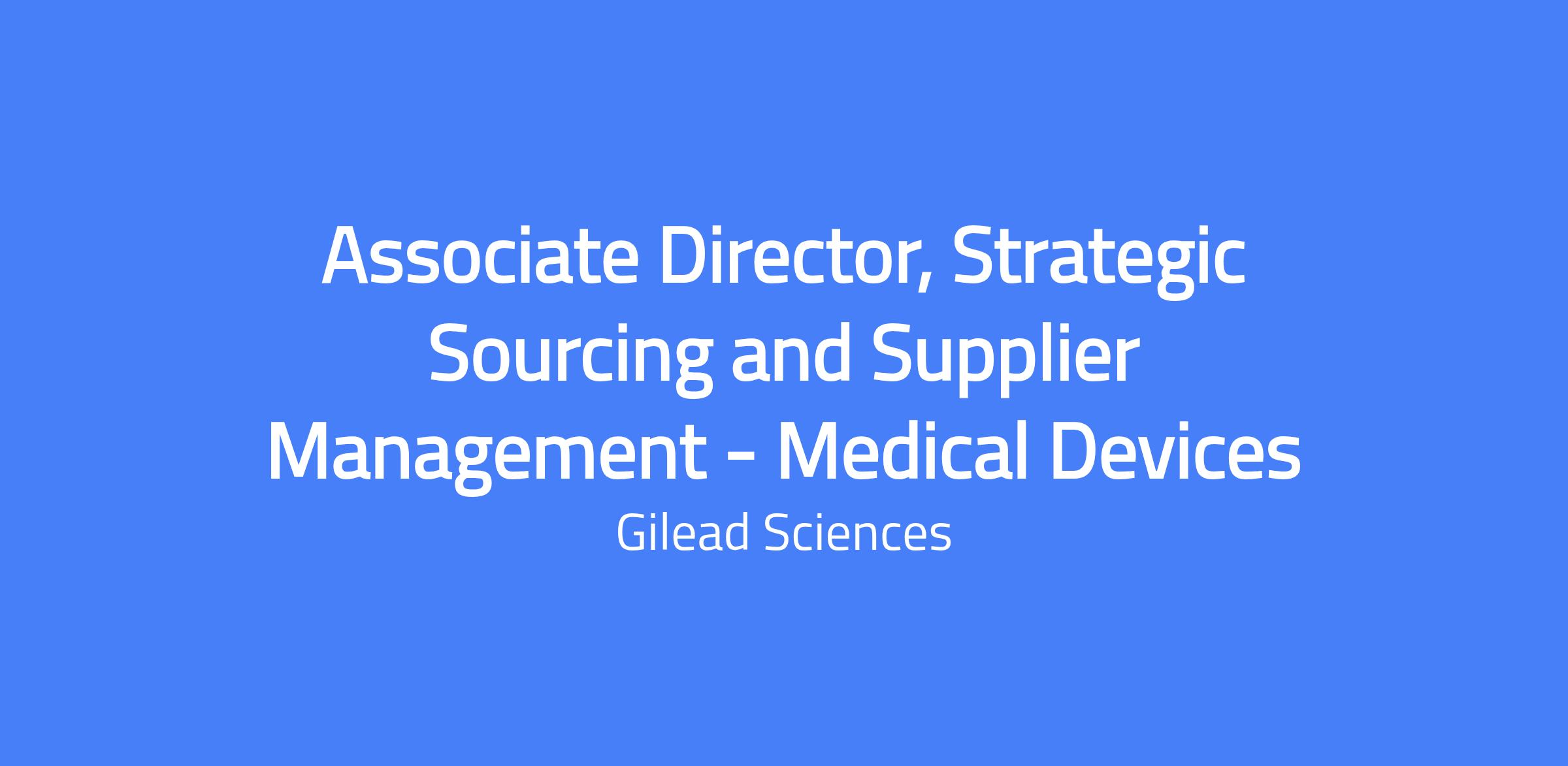 The Associate Director, Strategic Sourcing & Supplier Management, Medical Devices owns the business relationships with suppliers of devices and device related components used with any Gilead branded product. This includes ownership of the strategy, selection, risk, and performance management of suppliers providing devices and device related components for development or commercial products. This role is responsible for both the strategic and tactical business management of these supplier relationships. You will have responsibility for indirectly leading and influencing others, bidding, selecting and managing multiple devices and device related components. This position is based at the Gilead site in Foster City, CA, and is eligible for the Gilead GFlex program allowing remote work up to 2 days per week.