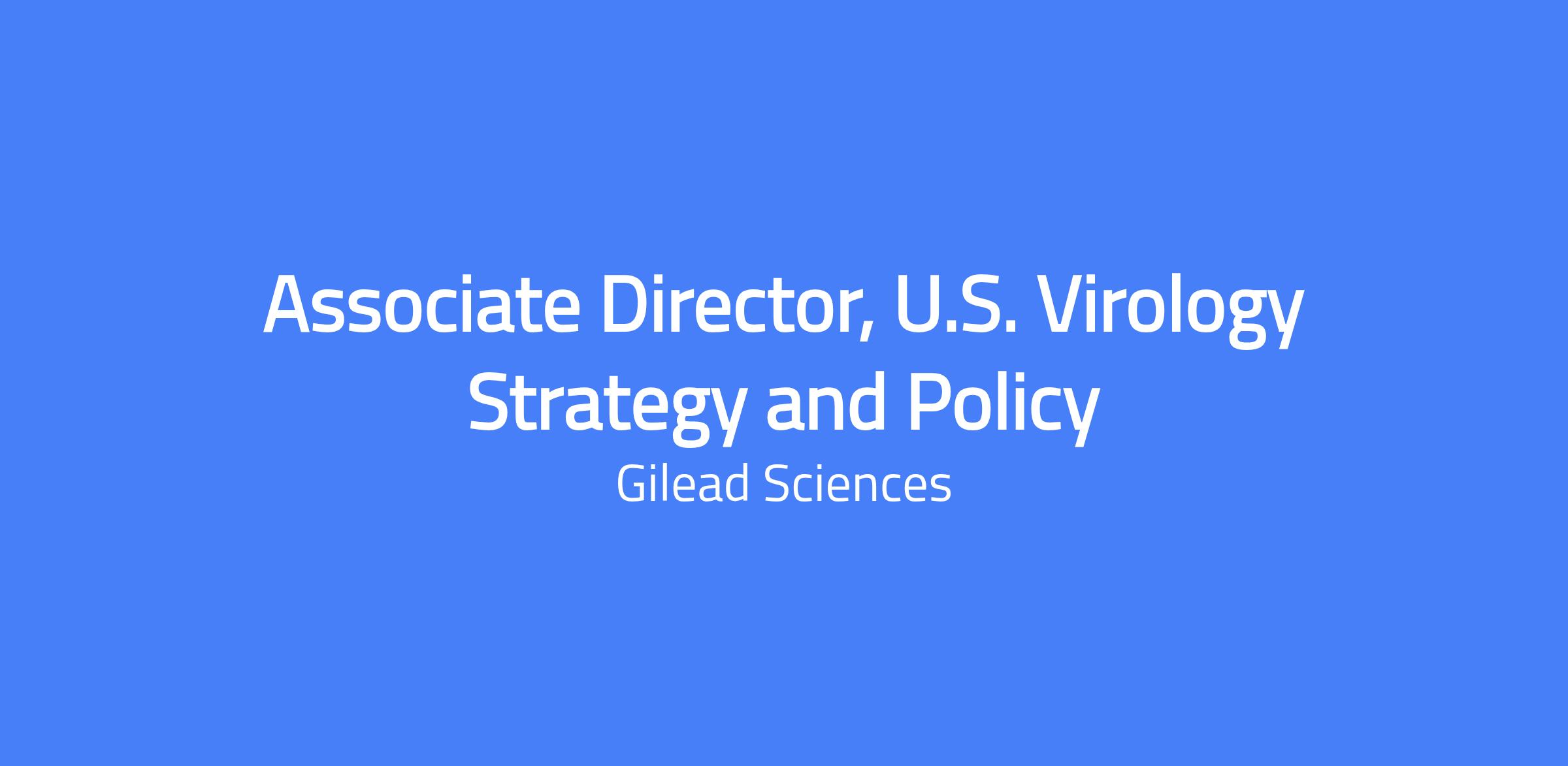 The Associate Director of U.S. Virology Strategy and Policy will conduct policy analysis and research, develop evidence-based messaging, and create policy and advocacy materials for internal and external audiences, serving as a resource to therapeutic area policy leadership on U.S. government policies that affect patient access to Gileadโs virology medicines, with emphasis on the HIV portfolio and state policy issues. The role requires deep knowledge of U.S. state healthcare policy (Medicaid) and state public health policy (Departments of Health), and familiarity with the HIV/AIDS landscape; working knowledge of federal healthcare policy issues is a plus.