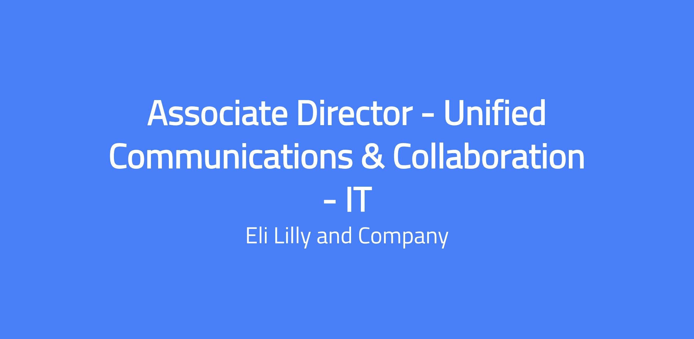 Associate Director, Unified Communications & Collaboration (IT) at Lilly will lead enterprise-wide unified communications and collaboration initiatives. You will drive operational excellence, improve workforce productivity, and deliver measurable business value through scalable, user-centric solutions. This role oversees a high-performing team and a strategic portfolio of services, applying ITIL and product-management practices to ensure reliable, scalable experiences across the enterprise. Location: Indianapolis, IN.