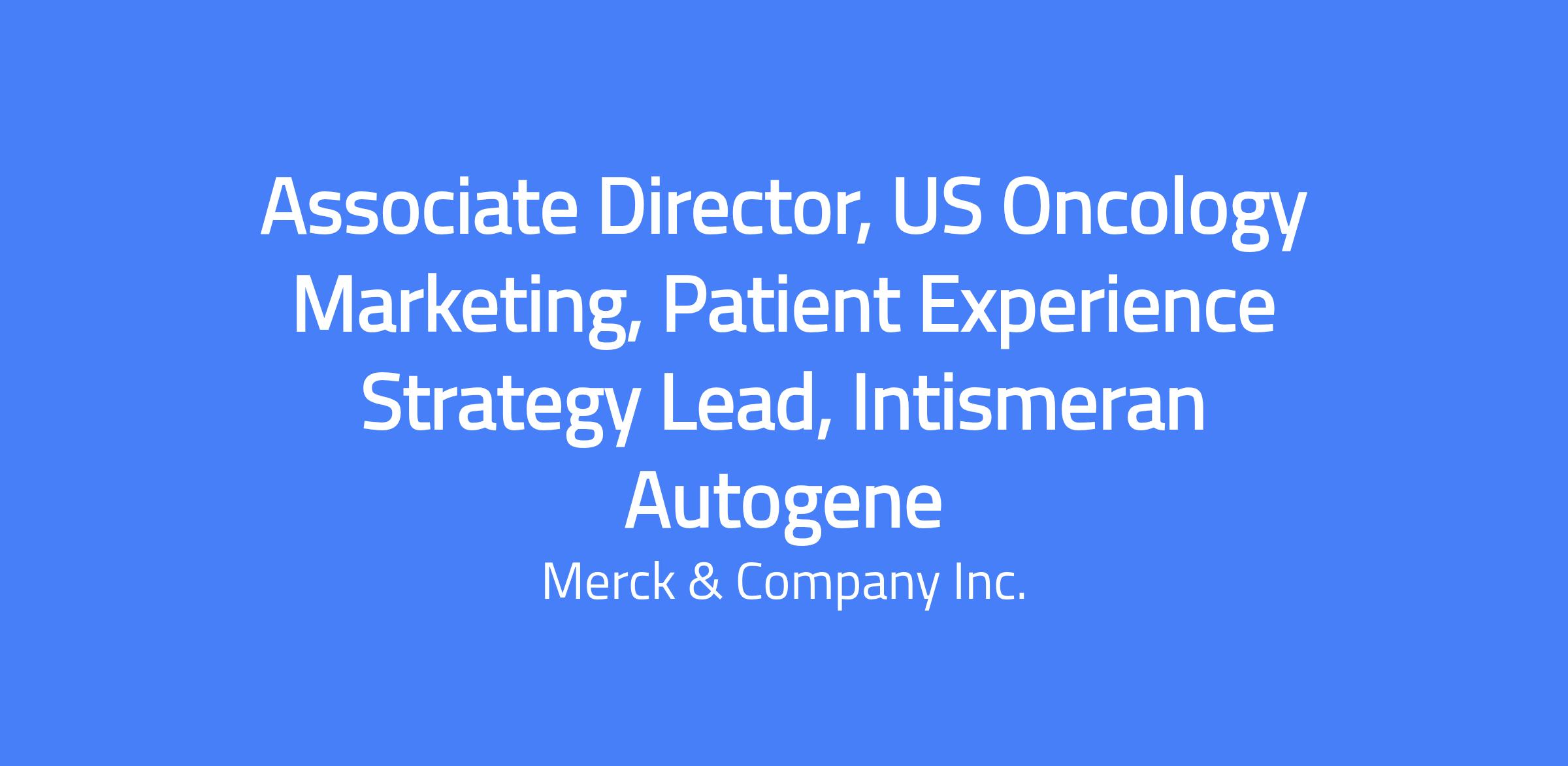 Associate Director, US Oncology Marketing, Patient Experience Strategy Lead, Intismeran Autogene