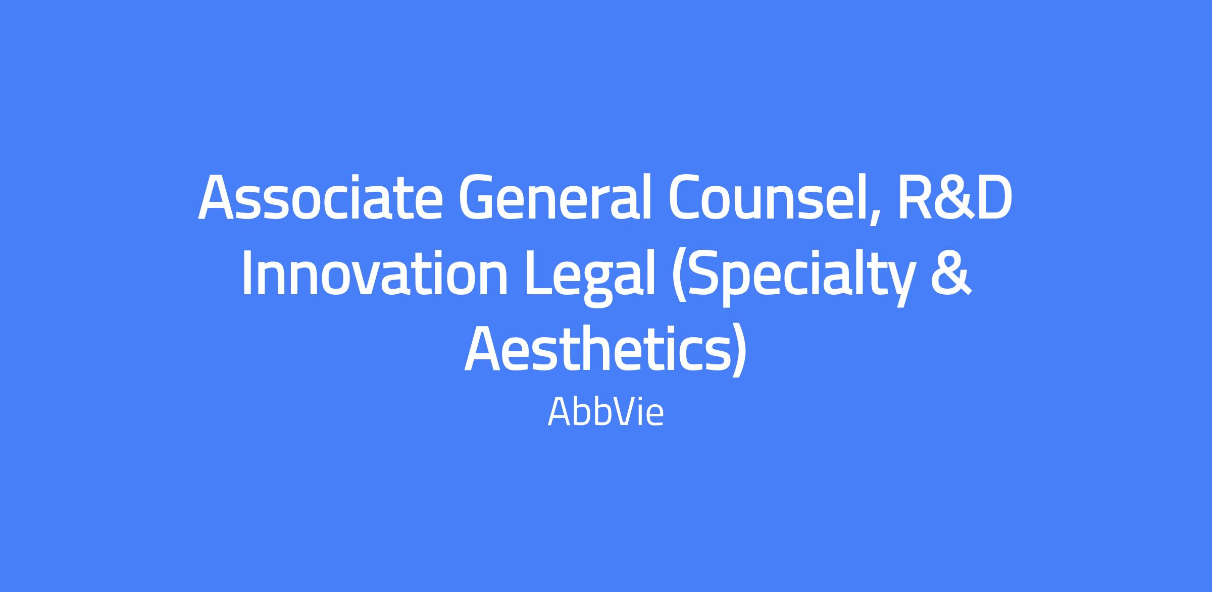 As an Associate General Counsel in the R&D Innovation Legal group, you will support AbbVie's R&D organization in navigating enterprise-critical issues in an evolving legal and regulatory environment as we work to bring new, innovative products to patients. This individual is motivated by the opportunity to address and solve emerging issues with a strategic and creative business-oriented approach and provide expert counsel on decisions impacting our long-term pipeline strategies. This role will primarily be supporting our Specialty and Aesthetics therapeutic areas.