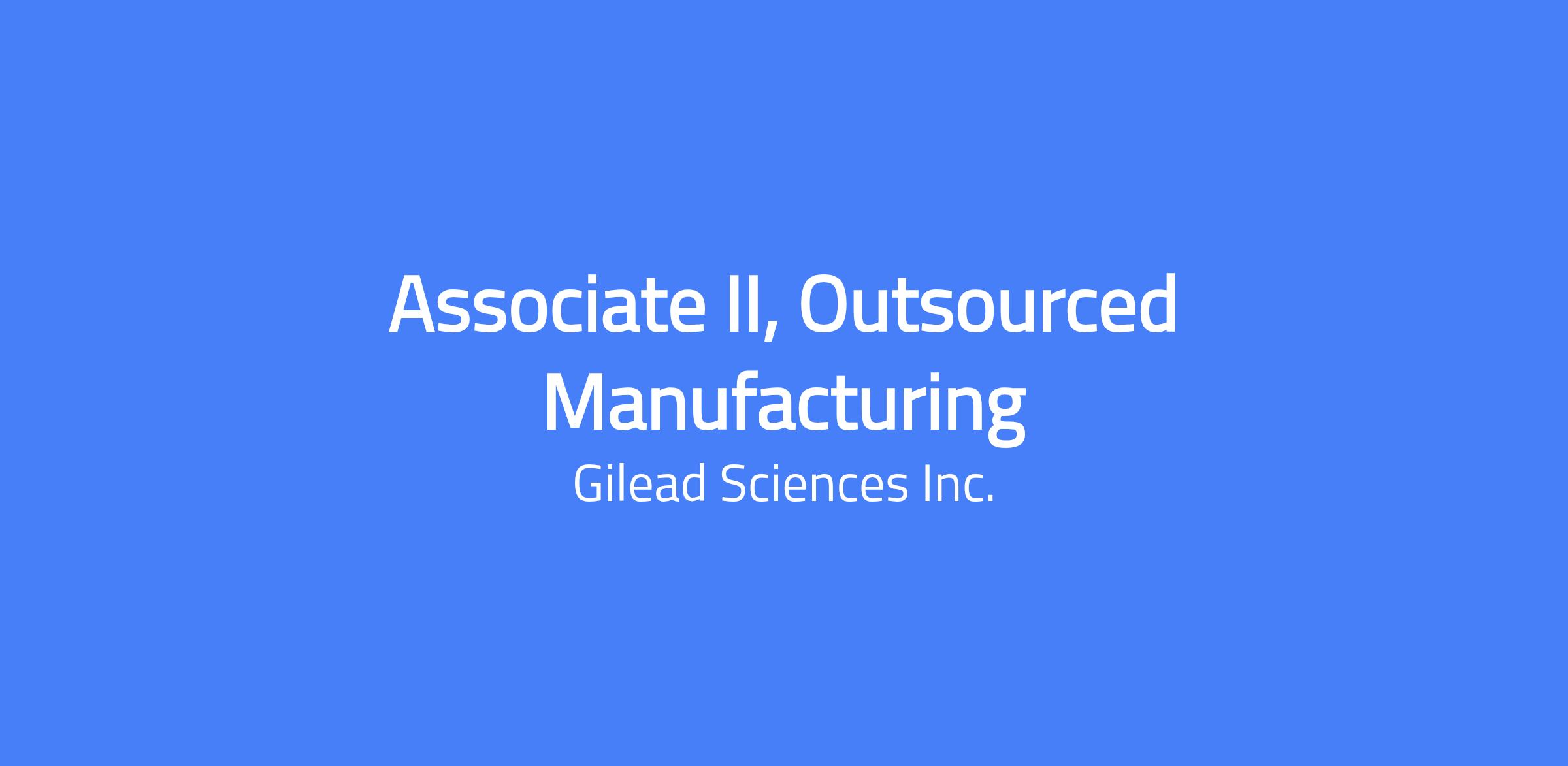 At Gilead, weâre creating a healthier world for all people. For more than 35 years, weâve tackled diseases such as HIV, viral hepatitis, COVID-19 and cancer â working relentlessly to develop therapies that help improve lives and to ensure access to these therapies across the globe. We continue to fight against the worldâs biggest health challenges, and our mission requires collaboration, determination and a relentless drive to make a difference. Every member of Gileadâs team plays a critical role in the discovery and development of life-changing scientific innovations. Our employees are our greatest asset as we work to achieve our bold ambitions, and weâre looking for the next wave of passionate and ambitious people ready to make a direct impact. We believe every employee deserves a great leader. People Leaders are the cornerstone to the employee experience at Gilead and Kite. As a people leader now or in the future, you are the key driver in evolving our culture and creating an environment where every employee feels included, developed and empowered to fulfil their aspirations. Join Gilead and help create possible, together. Job Description Associate II, Global External Manufacturing, Small Molecule Drug Substance The Senior Associate, Global External Manufacturing, Small Molecule Drug Substance (DS) works to support uninterrupted supply of Gileadâs clinical and commercial products through execution of manufacturing campaigns within our global external contract manufacturing network, while ensuring compliance with cGMP, regulatory requirements, and environmental, health, and safety legislations. This position is part of the Manufacturing Operations group within the larger Pharmaceutical Development and Manufacturing organization (PDM). This role requires collaboration with the Development, Quality, Regulatory, Analytical, Supply Chain, and Product & Portfolio Strategy organizations within PDM to ensure successful technology transfer, commercialization, launch, routine supply, and proactive management of changes across the product lifecycle. This position will be based at the Gilead Foster City campus. Responsibilities: Part of the team within Global External Manufacturing to execute the network strategy. Responsible for execution of the business with external manufacturing organizations, and management of supplier performance Effectively collaborates with functions within and external to PDM to achieve corporate, cross functional, and departmental goals Part of the team that influences overall performance of the network CMOs to achieve Gileadâs strategic and tactical business outcomes, including Key Performance Indicators Participates in coordination of inter- and intra-company technical transfers. Executes the regular, tactical management of CMOs to ensure Gileadâs products are manufactured in accordance with the registered process and approved Master Production Record Supports the team to achieve timely resolution of issues associated with manufacturing and/or compliance, including handling of deviations, complaints, out-of-specification investigations, Material Review Board associated investigations, finished product trending, and change control Fosters and facilitates continuous improvement of production and business processes to reduce cost, improve quality, increase efficiency, and ensure sustainability. May represent manufacturing on one or more cross-functional Development or Commercial CMC teams Basic Qualifications: 4+ years of experience in a pharmaceutical/biotech organization and a BA or BS degree in science or engineering, an advanced degree in science or engineering is desirable An MS or MBA degree may be substituted for 1 year of relevant experience The salary range for this position is: $102,085.00 - $132,110.00. Gilead considers a variety of factors when determining base compensation, including experience, qualifications, and geographic location. These considerations mean actual compensation will vary. This position may also be eligible for a discretionary annual bonus, discretionary stock-based long-term incentives (eligibility may vary based on role), paid time off, and a benefits package. Benefits include company-sponsored medical, dental, vision, and life insurance plans*. For additional benefits information, visit: https://www.gilead.com/careers/compensation-benefits-and-wellbeing * Eligible employees may participate in benefit plans, subject to the terms and conditions of the applicable plans. For jobs in the United States: Gilead Sciences Inc. is committed to providing equal employment opportunities to all employees and applicants for employment, and is dedicated to fostering an inclusive work environment comprised of diverse perspectives, backgrounds, and experiences. Employment decisions regarding recruitment and selection will be made without discrimination based on race, color, religion, national origin, sex, age, sexual orientation, physical or mental disability, genetic information or characteristic, gender identity and expression, veteran status, or other non-job related characteristics or other prohibited grounds specified in applicable federal, state and local laws. In order to ensure reasonable accommodation for individuals protected by Section 503 of the Rehabilitation Act of 1973, the Vietnam Era Veterans' Readjustment Act of 1974, and Title I of the Americans with Disabilities Act of 1990, applicants who require accommodation in the job application process may contact ApplicantAccommodations@gilead.com for assistance. For more information about equal employment opportunity protections, please view the 'Know Your Rights' poster. NOTICE: EMPLOYEE POLYGRAPH PROTECTION ACT YOUR RIGHTS UNDER THE FAMILY AND MEDICAL LEAVE ACT Gilead Sciences will not discharge or in any other manner discriminate against employees or applicants because they have inquired about, discussed, or disclosed their own pay or the pay of another employee or applicant. Howev